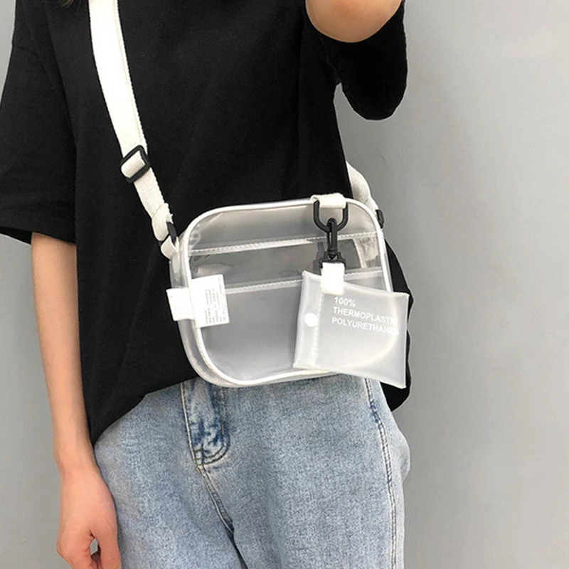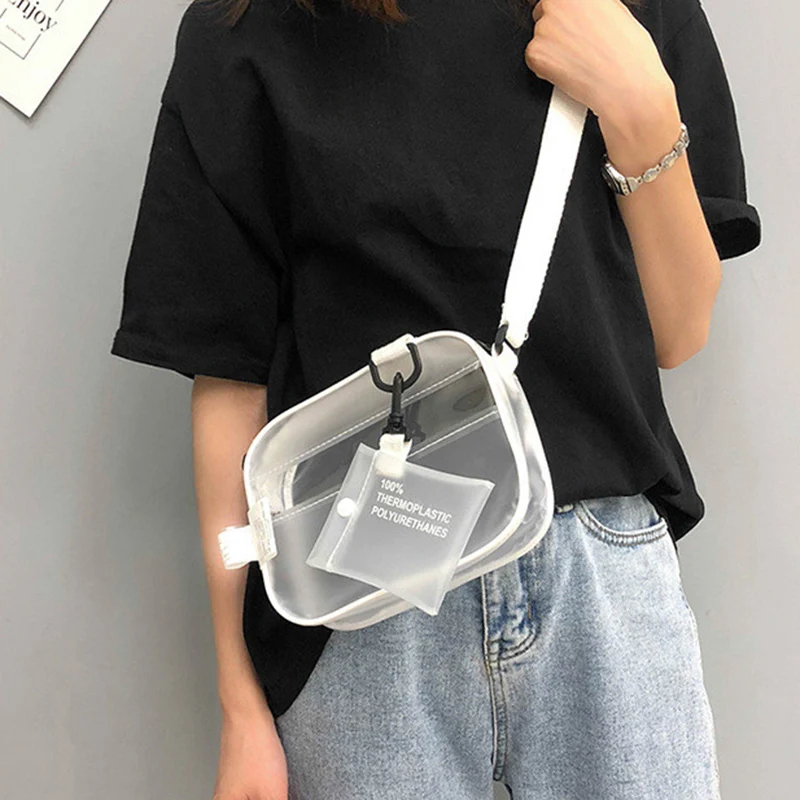 Повседневные прозрачные женские сумки из ПВХ, саквояж на ремне через плечо, маленькие сумочки с клапаном на держатель для карт и широком ремешке