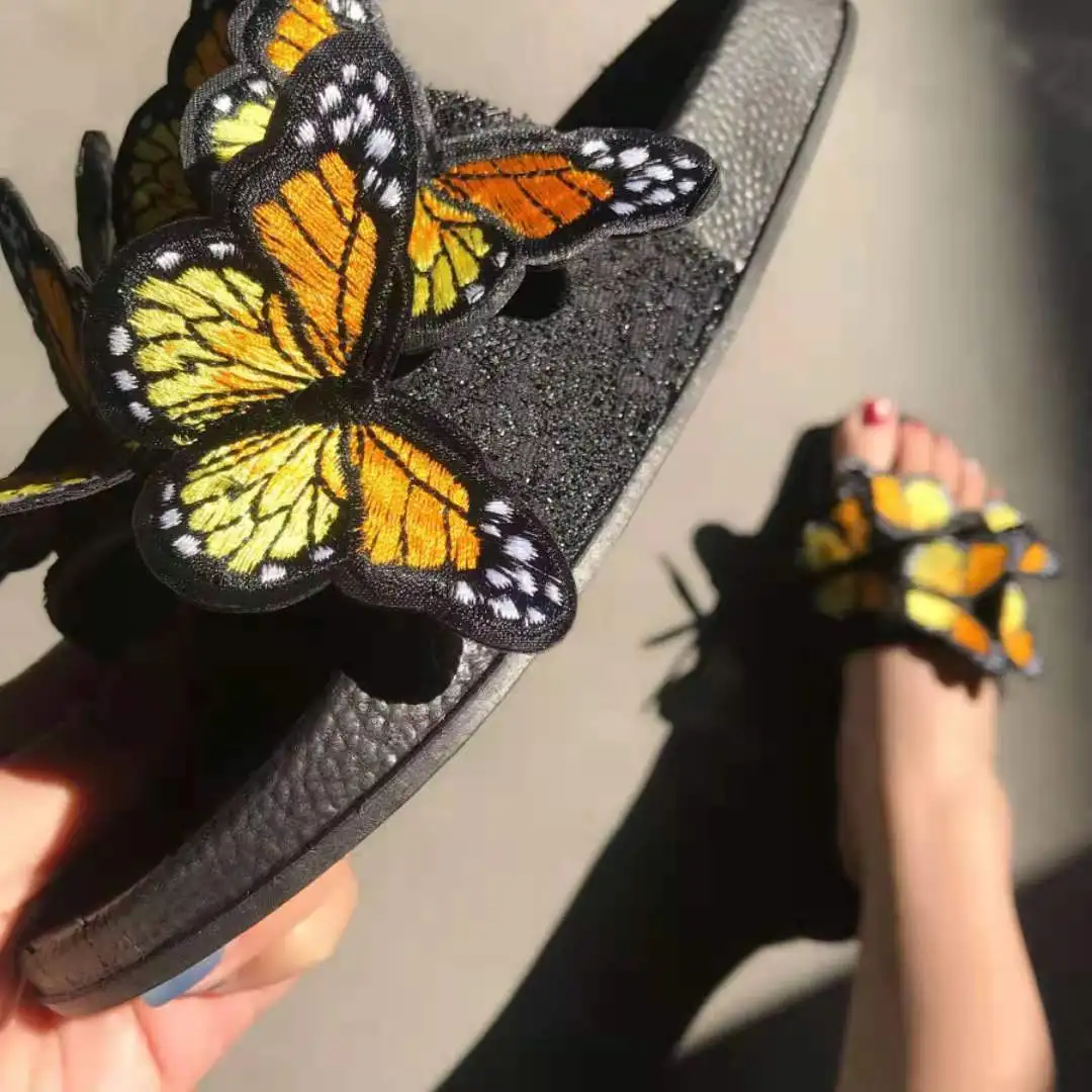 Женские летние тапочки с бабочкой, сандалии с вышивкой и бантом, женская обувь на платформе, шлепанцы, уличная пляжная обувь, женская фотообувь, 55