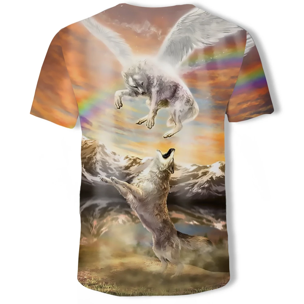 Мужская футболка с 3D-принтом волка, летняя модная повседневная фут...