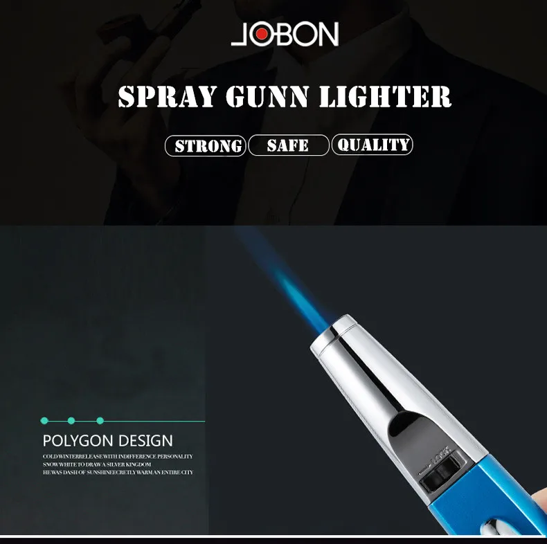 Металлический газовый бутановый распылитель Jobon, ветрозащитный фонарь с синим пламенем, охлаждающая уличная кухонная зажигалка, струйная Зажигалка для сигар, дропши