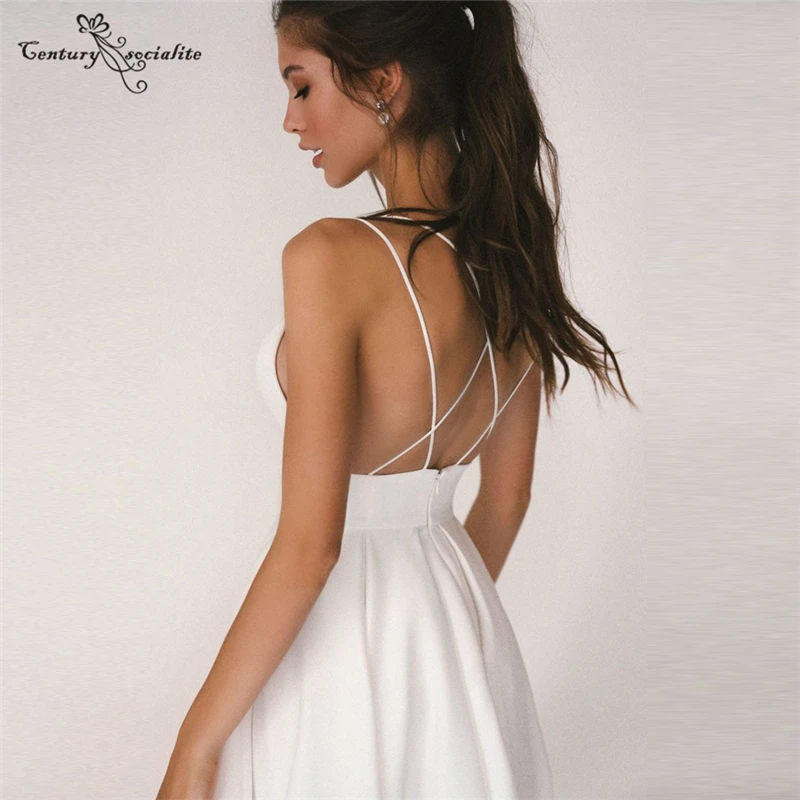 Женское свадебное платье, короткое пляжное платье невесты на бретельках с открытой спиной, платье для приема невесты, Дешевое платье