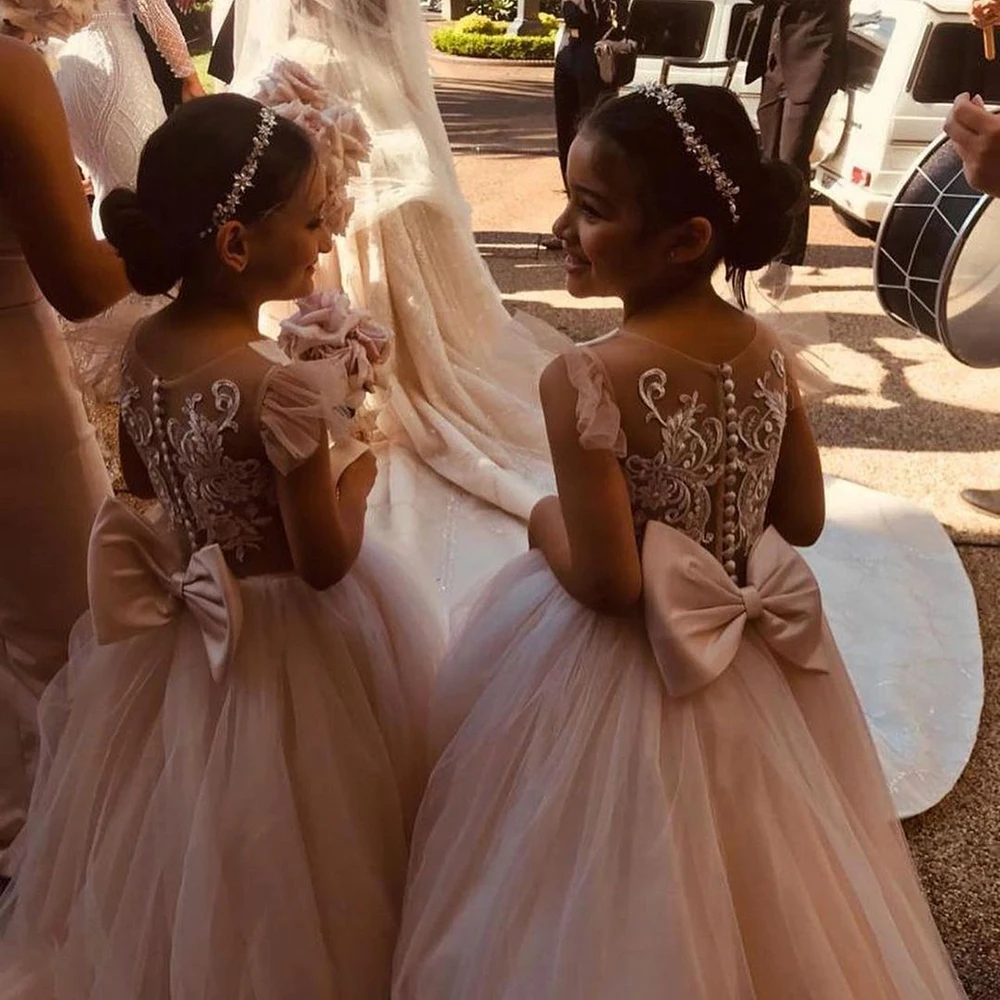 Кружевное детское платье цвета слоновой кости для первого причастия, детское атласное платье телесного цвета с хрустальным жемчугом и поясом для крещения, платье для маленькой невесты, свадебное платье для девочек