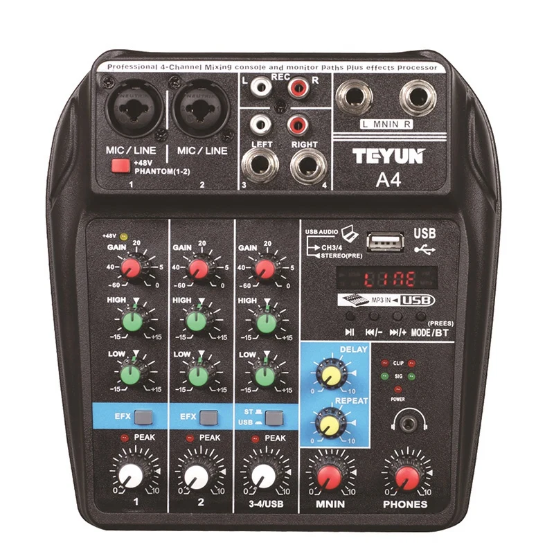 Teyun 4-канальный микшер открытый конференции аудио, включающим в себя гарнитуру блютус и флеш-накопитель USB реверберации аудио микрофона караоке в прямом эфире с звуковая карта