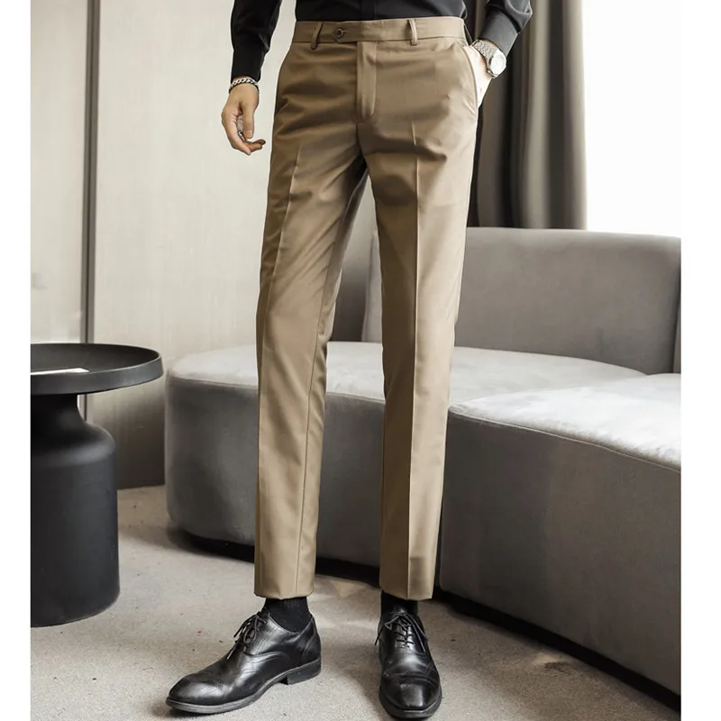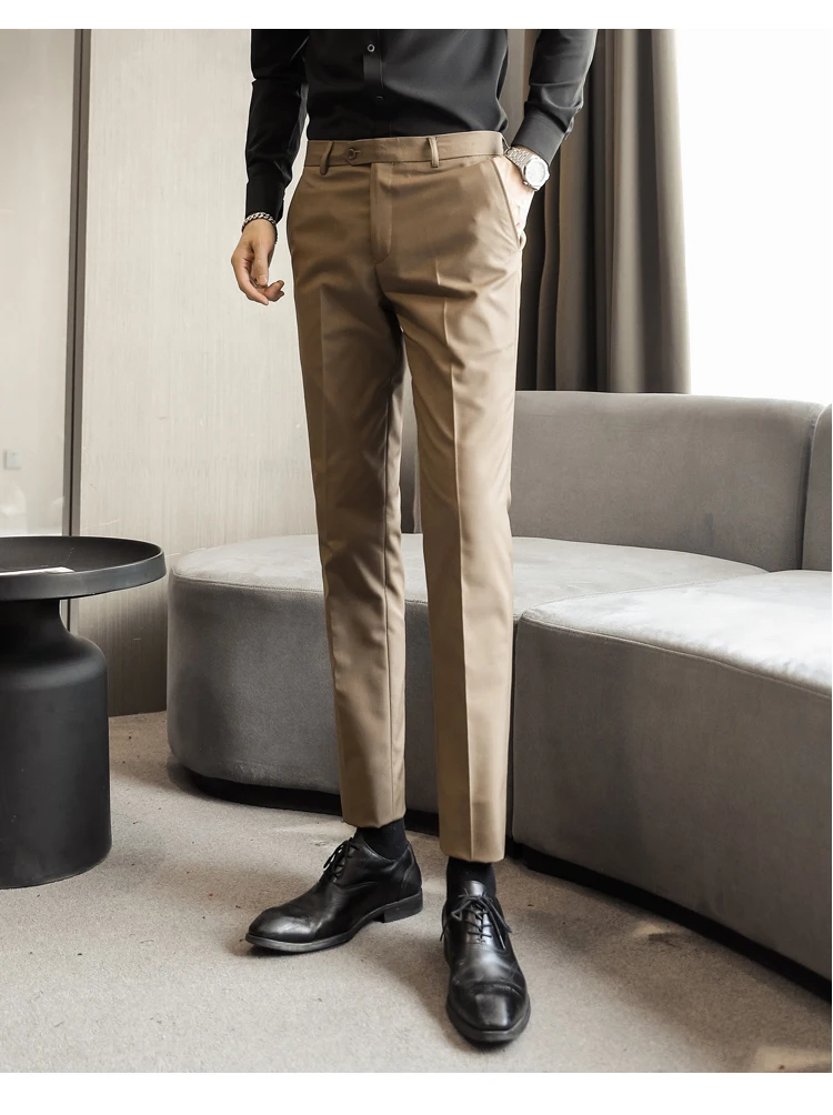Мужские модные хлопковые однотонные деловые Костюмные брюки 2021, м...