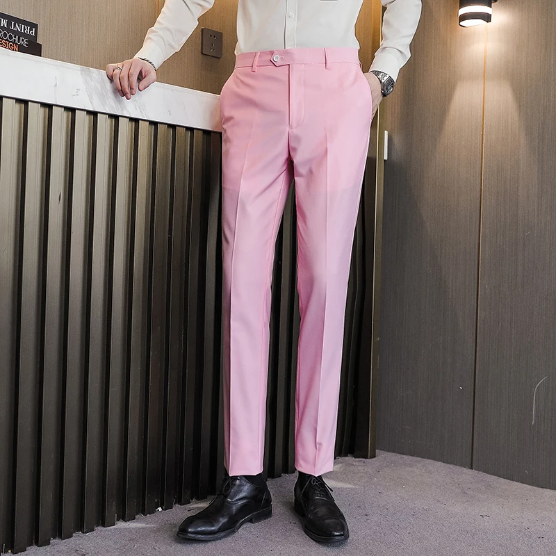 Мужские классические Костюмные брюки, синие, зеленые, розовые, черн...