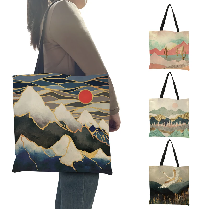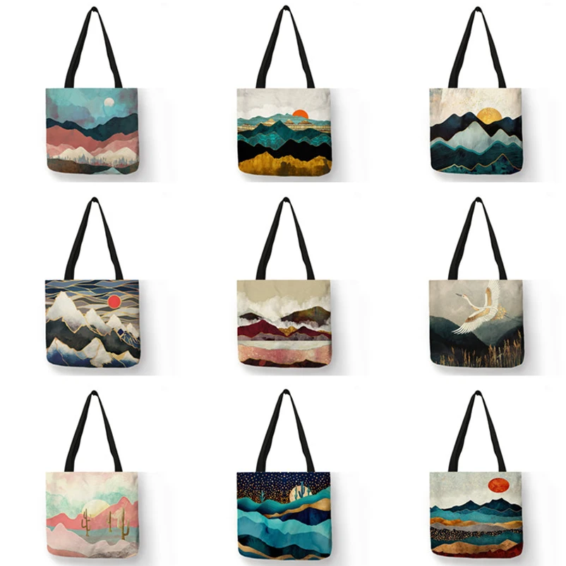 Повседневная Сумка-тоут для женщин, сумка для покупок с масляным рисунком горного леса, удобная уличная пляжная сумка на плечо