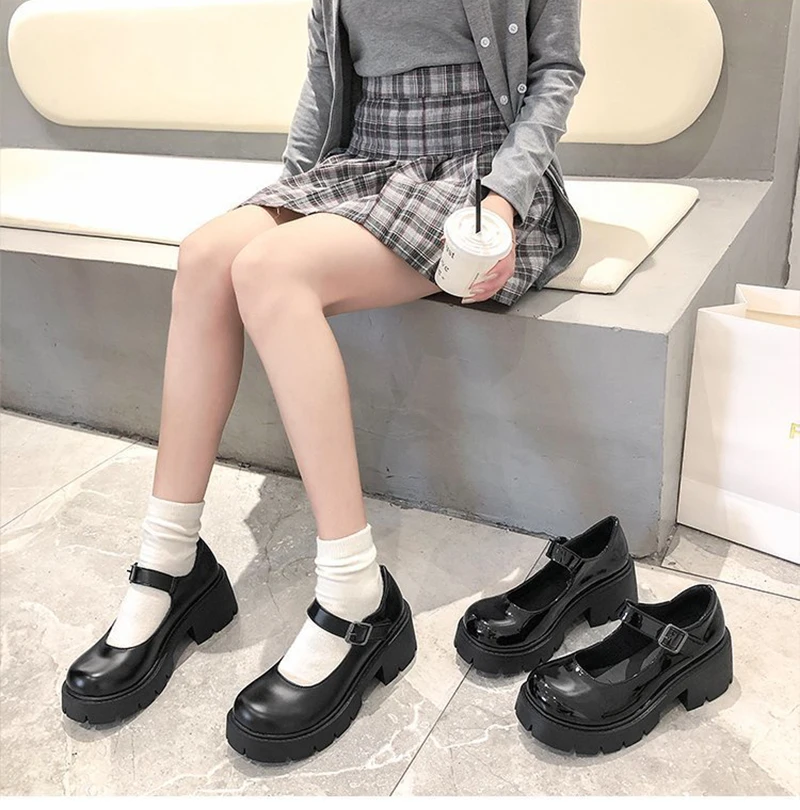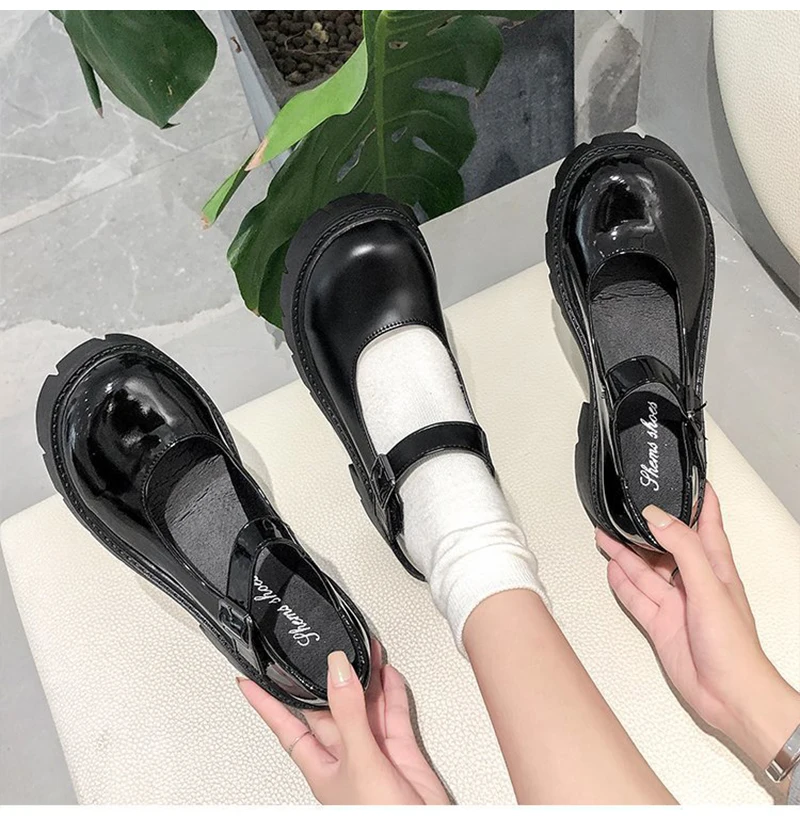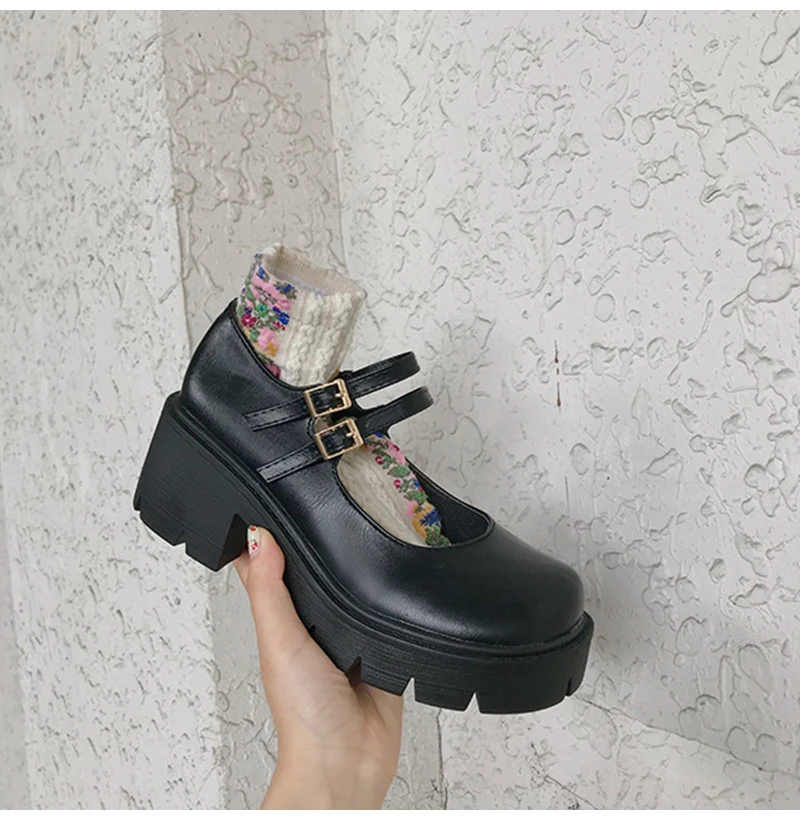 Туфли в Стиле Лолита; Женские туфли мэри джейн на платформе с пряжкой; Женские винтажные туфли на высоком каблуке; Нескользящие туфли для студентов