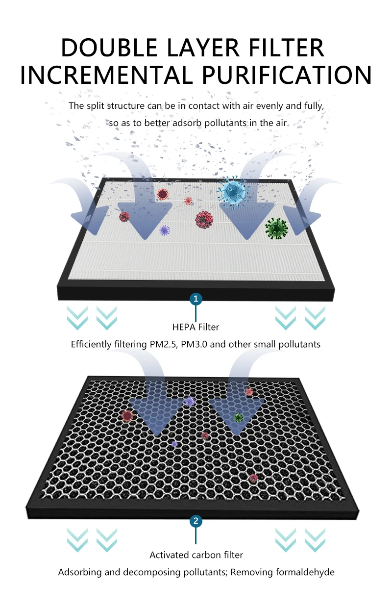 Размер: Hepa фильтр: 285*250*30 мм и Активный угольный фильтр: 285*250*7 ммПосылка включает в себя: Hepa фильтр * 1 и Активный угольный фильтр * 1