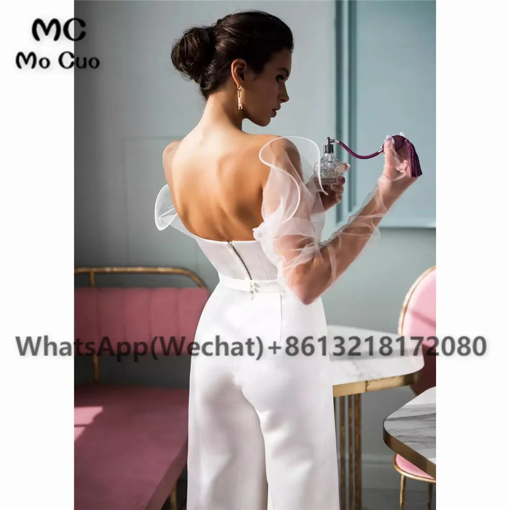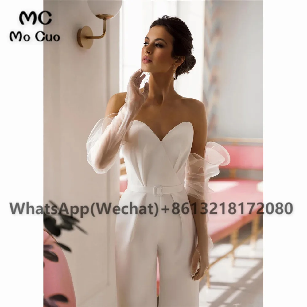 2021, Свадебный комбинезон, платья со съемными рукавами, свадебные платья в пол, эластичное атласное платье в стиле бохо