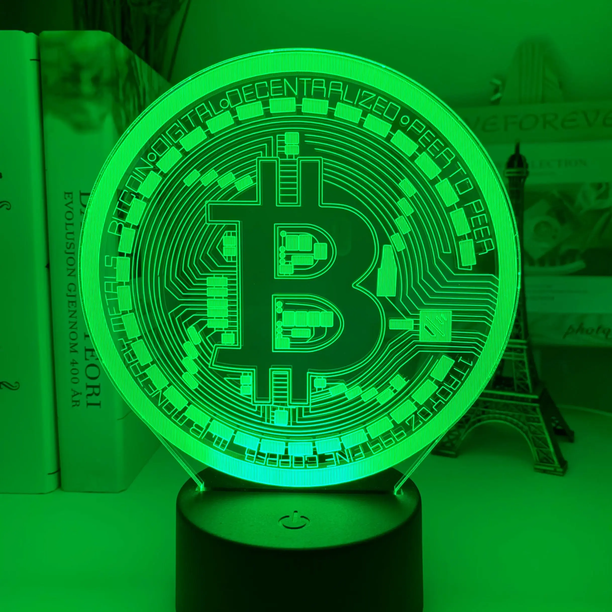 Акриловый светодиодный ночсветильник с биткоином для комнаты, декоративный ночсветильник с сенсорным датчиком, 7 цветов, меняющийся на батарейках, Настольная Ночная лампа 3D