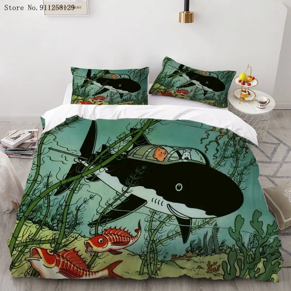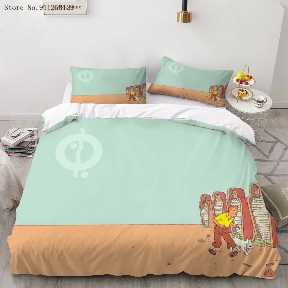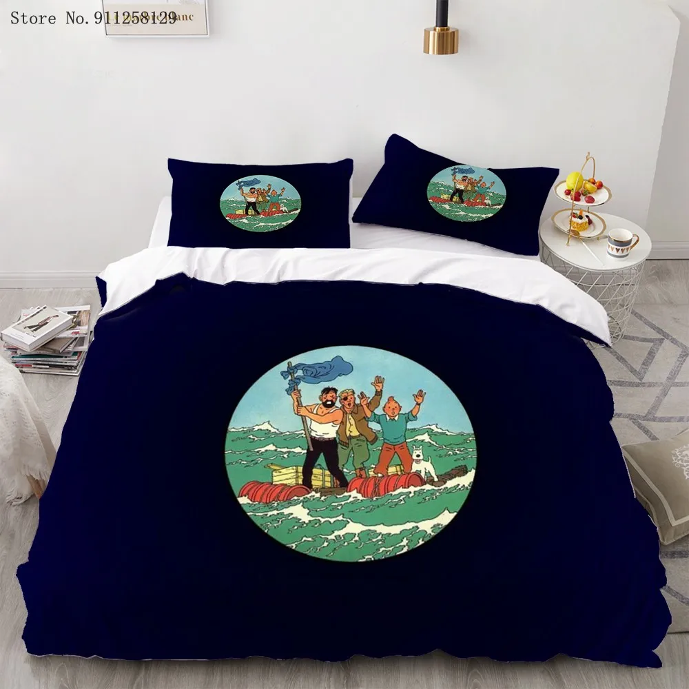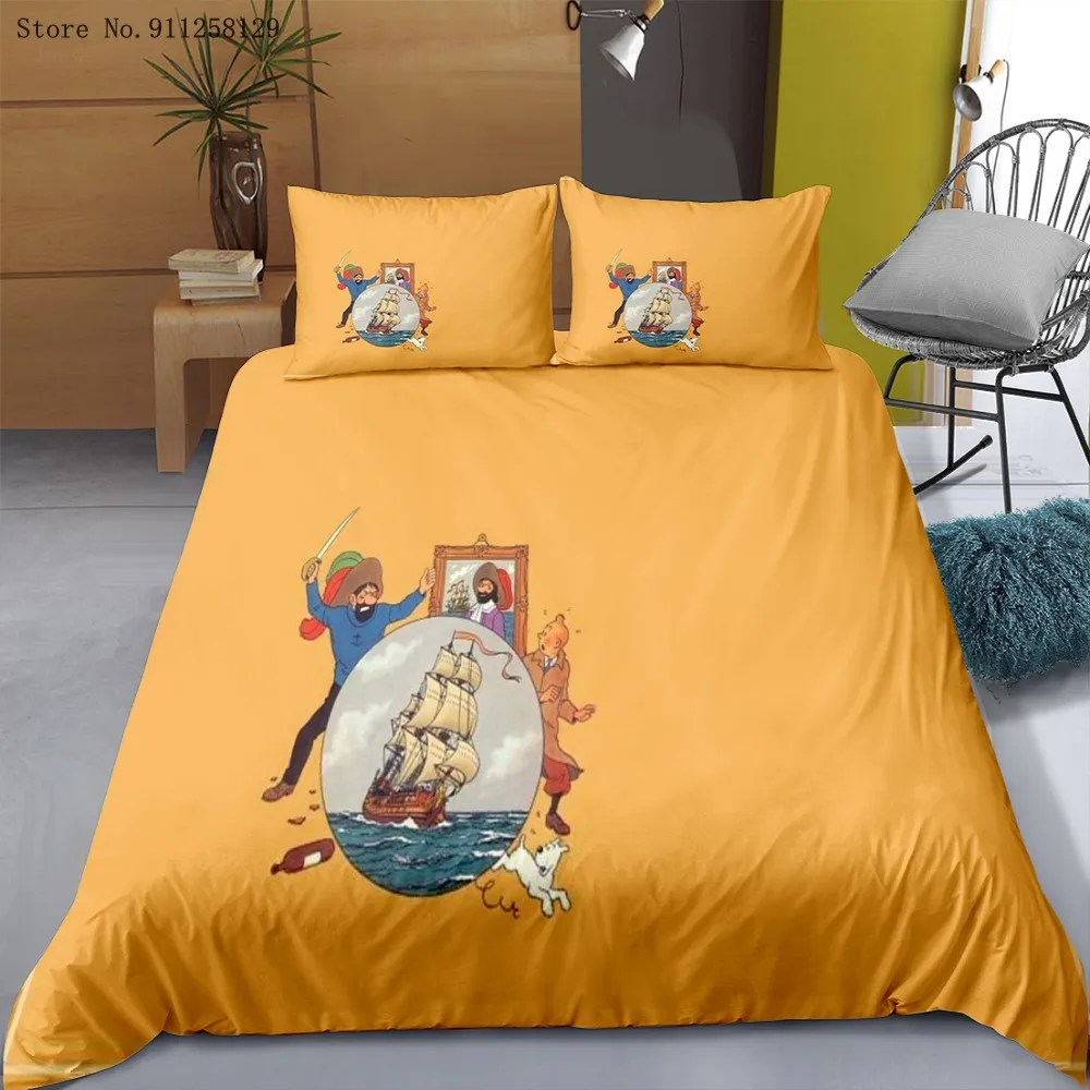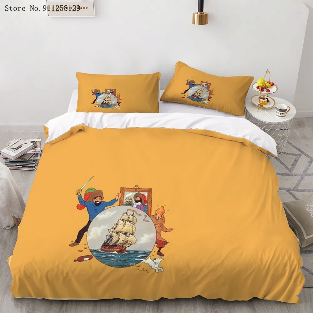 Комплект постельного белья из 23 предметов Искусство приключений Тинтин, пододеяльник с забавным фильмом, двойная двуспальная кровать, пододеяльник, наволочка