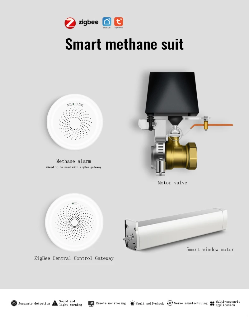 【Сценическая связь】Реализовывайте предустановленные варианты безопасности через мобильное приложение. Как только Контролируемая концентрация природного газа достигает 8% ЛЛ, сигнал тревоги будет выдан удаленно. При достижении соответствующей концентрации шлюз связи высылает сигнал локального звука и светильник, и мобильный телефон получит напоминание о нажатии приложения, чтобы уведомить вас вовремя, И мобильный телефон может открыть окно через открывалку для окон. (Открыватели окон и шлюзы не включены.)【Обнаружение высокой чувствительности】Использование низко-токовых газовых датчиков, встроенный модуль компенсации температуры, с высокой чувствительностью, точной сигнализацией, для предотвращения пожаров.【Многоуровневое применение】Детектор дыма может нормально работать в домах, гостиницах, магазинах, офисах и квартирах. Защитите каждый момент. [Требуется] этот продукт применим только к шлюзу Tuya.