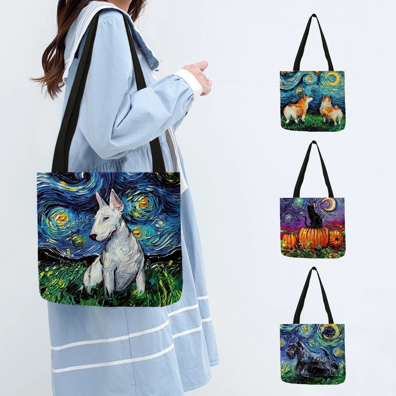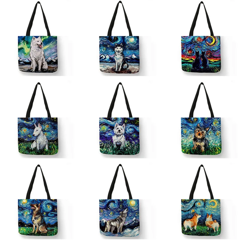 Ван Гог/звездное небо, Сумка с принтом собаки, сумки на плечо, женские большие сумки, женские повседневные сумки для повседневного использования