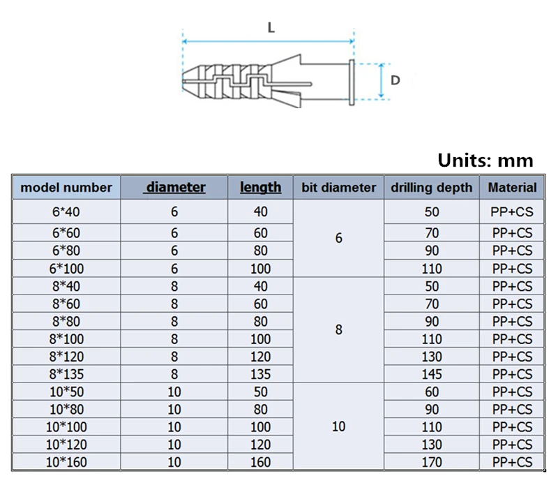 1. Мы выбираем высококачественную углеродную сталь и пластик, используя передовые международные технологии, чтобы обеспечить качество продукта, поверхность готового продукта гладкая без заусенцев, так что продукт при равномерном напряжении не легко сломать.2. Стандартный метрическую систему, используя Стандартный ized метрическую систему, средняя погрешность составляет менее 0,01 мм3. Когда вам нужно, пожалуйста, свяжитесь с нами по электронной почте или в & A, мы предоставим профессиональное обслуживание и ответим в течение 24 часов.4. Применение: Этот продукт широко используется для фиксации и закрепления твердой стены. Например, обычные модели 6x30 и 8x40. Эти две модели обычно используются для кулонов кухни и ванной комнаты, таких как вешалка для полотенец, вешалка для резки, установка ламп и фонарей и т. д. Некоторые удлиненные 8x60, 8x80, 8x100, 10x80, 10x100 в основном используются для подвешивания тяжелых предметов, таких как ЖК-телевизоры, вытяжки и т. д.