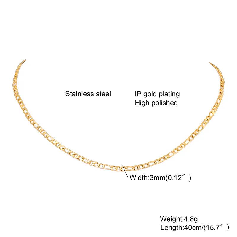 Женская плоская цепочка Figaro, ожерелье из нержавеющей стали, металлическое звено, минималистичное украшение для укладки, 16-20 дюймов