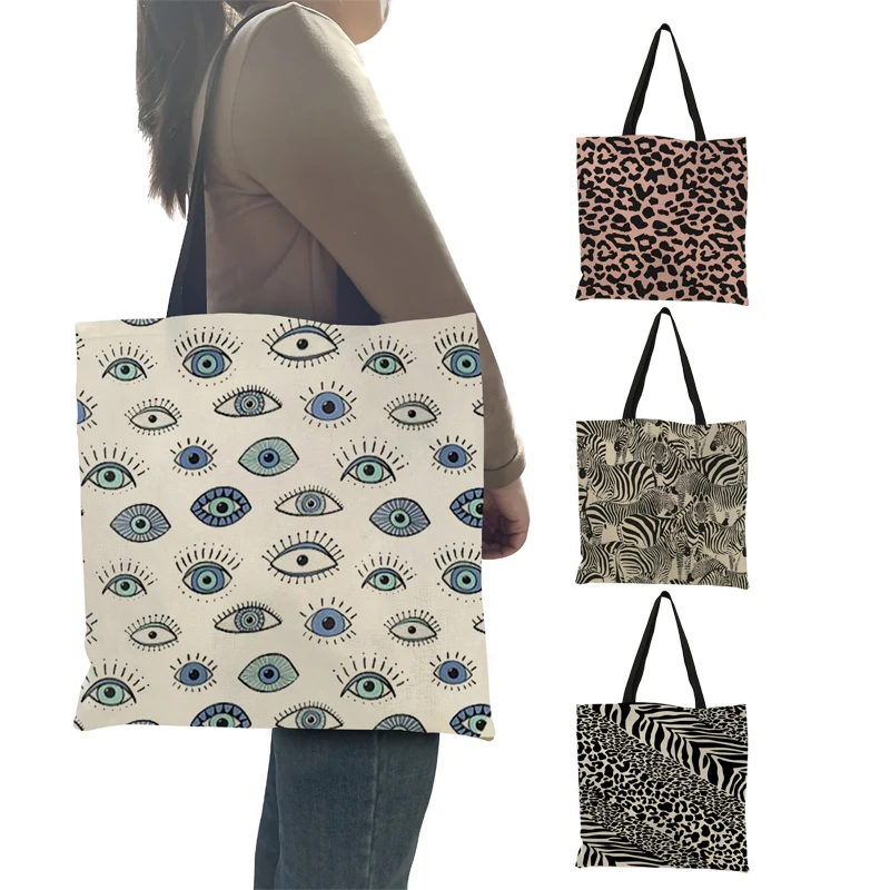 Новинка лета 2021, женская сумочка с дьявольским глазом и леопардовым принтом, женская сумка в полоску зебры, женская сумка-тоут, сумка для покупок, пляжные сумки для отдыха