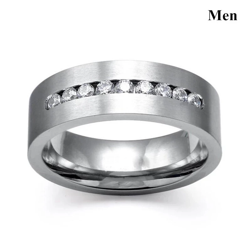 Набор мужских и женских колец, из нержавеющей стали, стразы и циркония