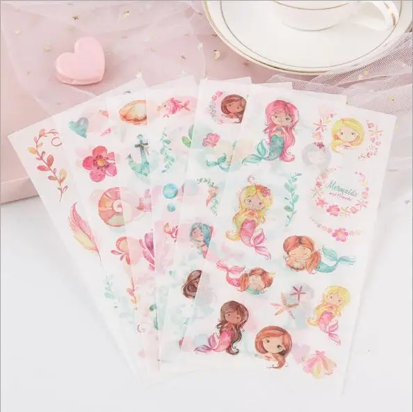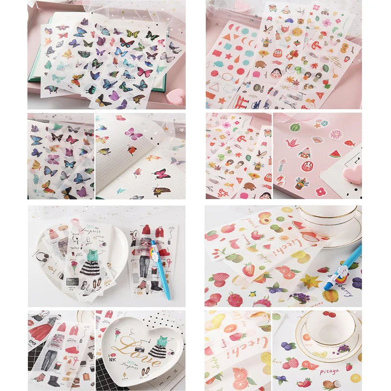 6 листов милый Животные цветочный наклейки журнал Декоративные Канц...