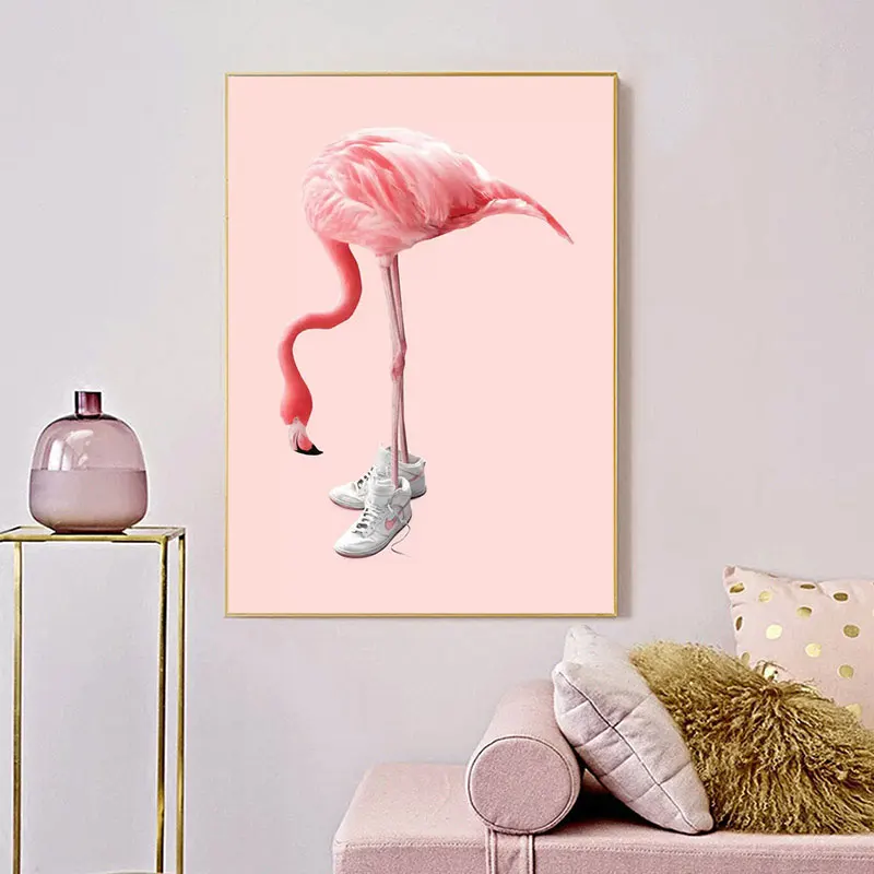 Розовый плакат Фламинго в скандинавском стиле, парусиновые кроссовки, постеры и принты, настенные художественные фотографии для декора гостиной