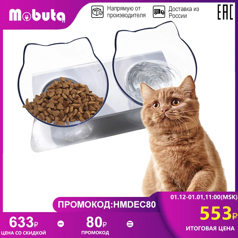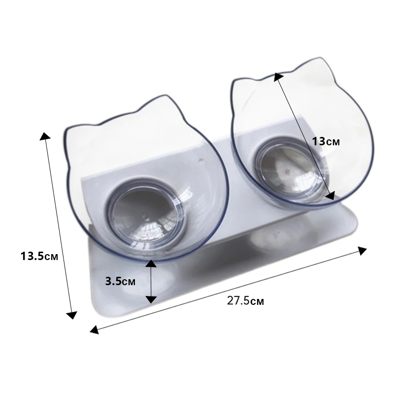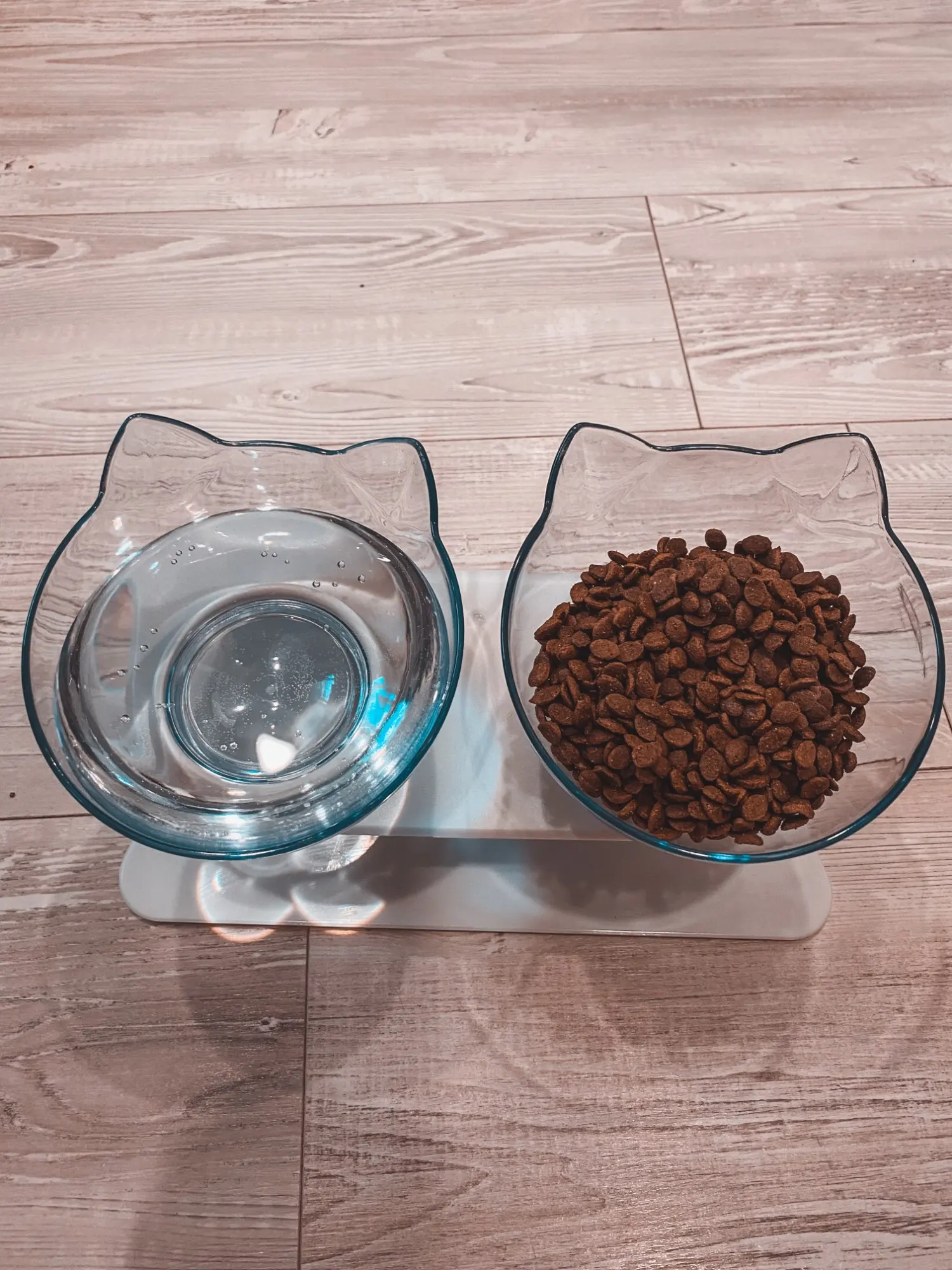 тяжёлая подставка, большие миски, всё хорошо, но кошке вроде не удобно, может привыкнет
