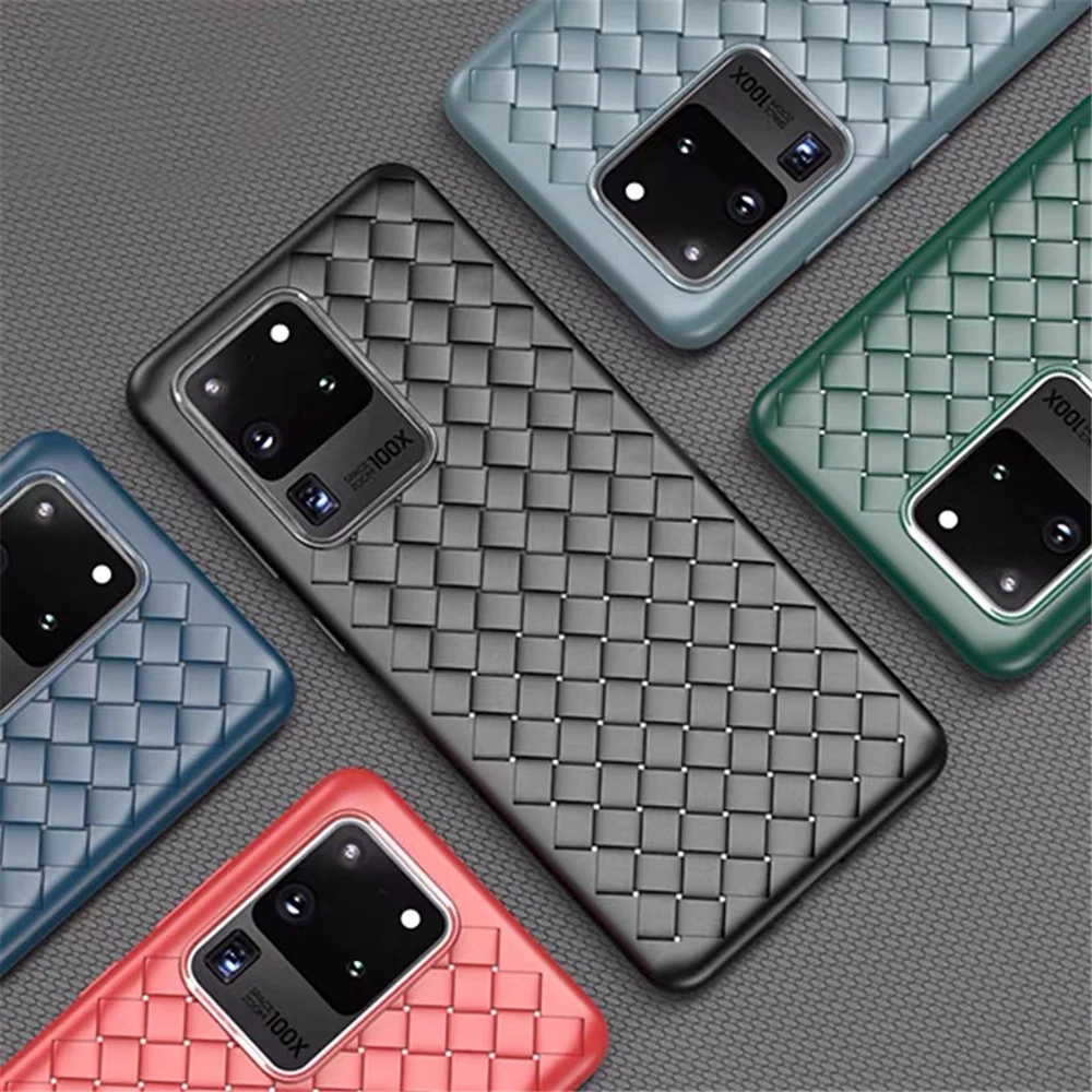 Роскошный Ультратонкий плетеный кожаный чехол для телефона Samsung Galaxy S20 Ultra Note 10 Plus, мягкая силиконовая Противоударная задняя крышка