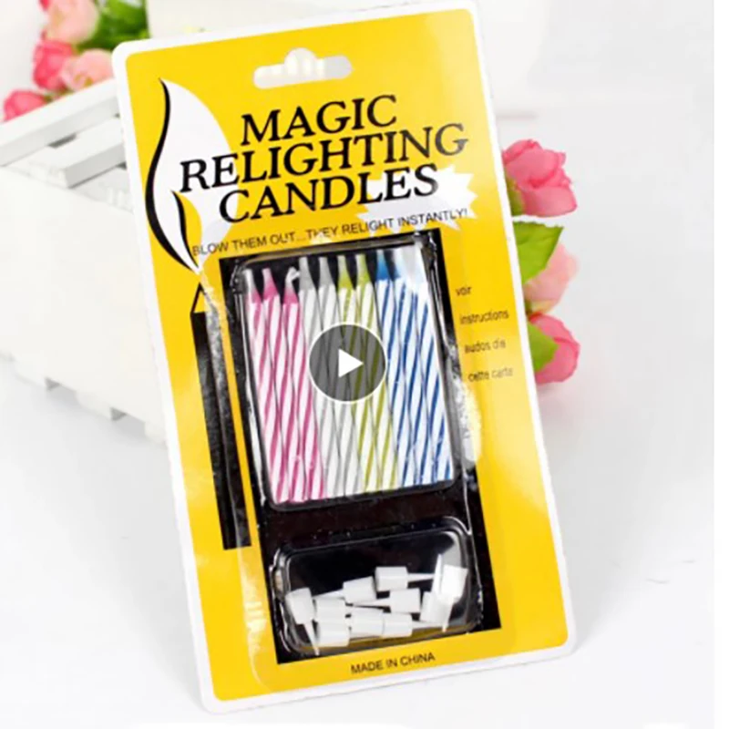 После зажигания свечей дайте им гореть около 60 секунд, затем задуйте их, и через несколько секунд пламя снова загорится волшебным образом! Это действительно хорошая идея порадовать ваших друзей на дне рождения!