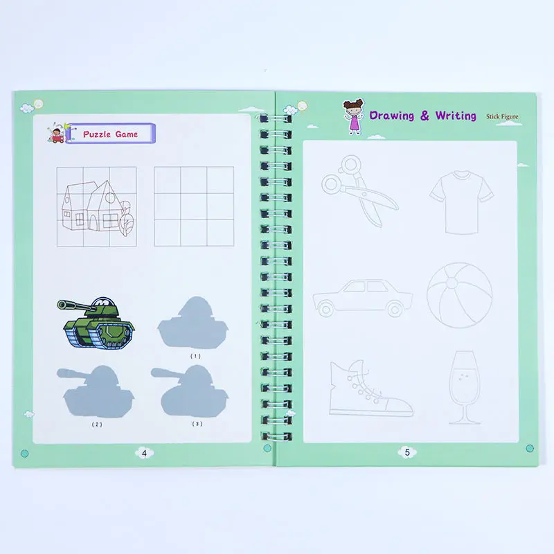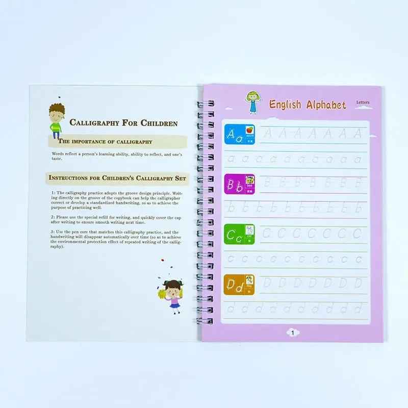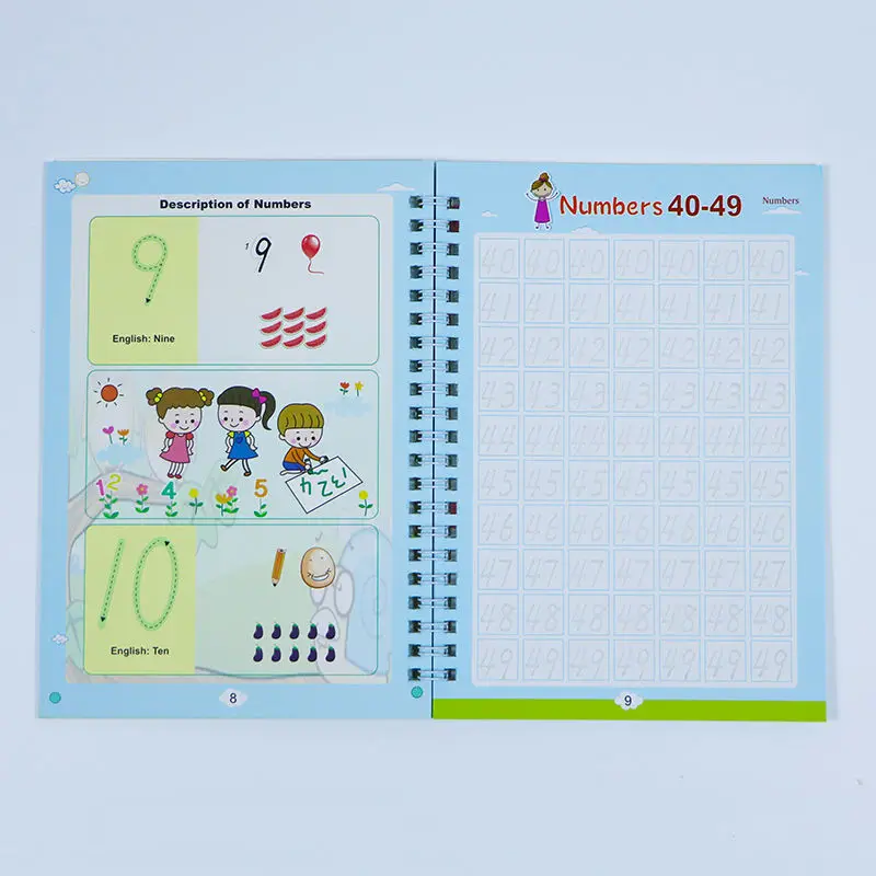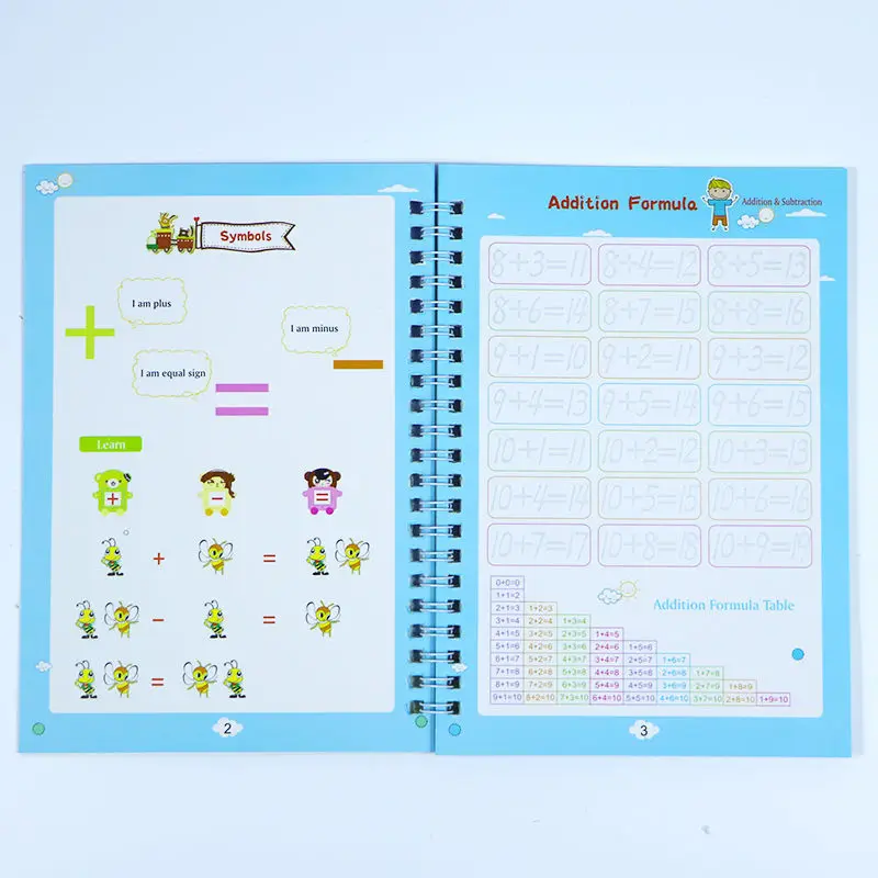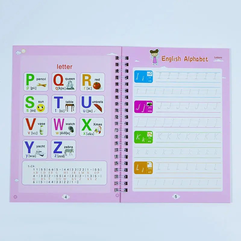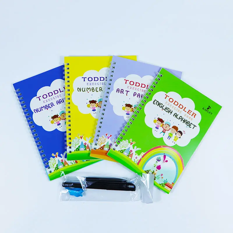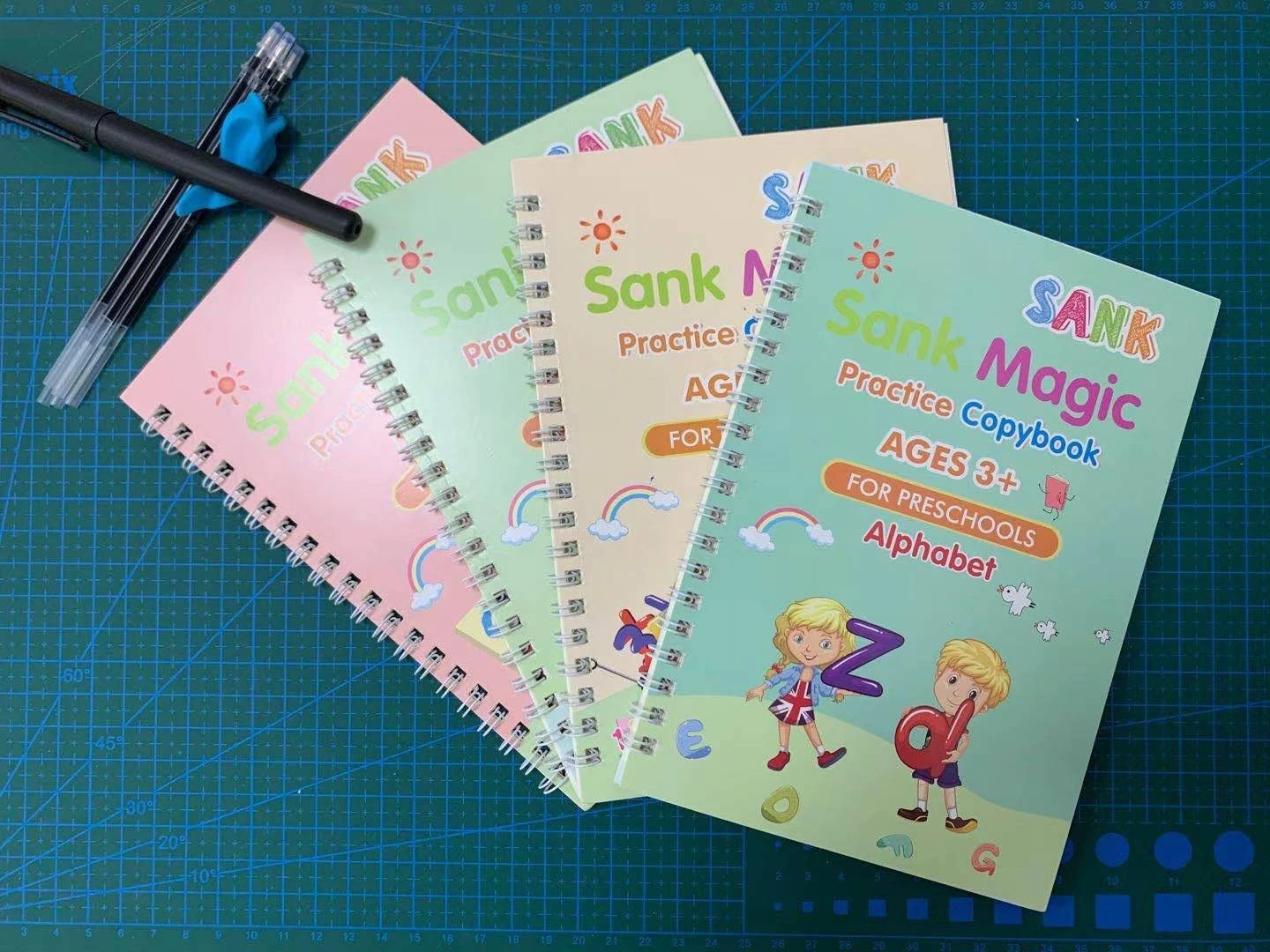 4 книгиНабор детских волшебных книг, многоразовые 3d-каллиграфические тетради, английские цифры, надпись, Волшебная тренировка, тетрадь