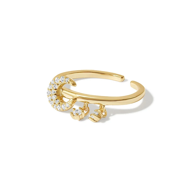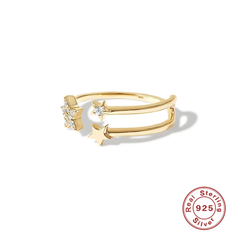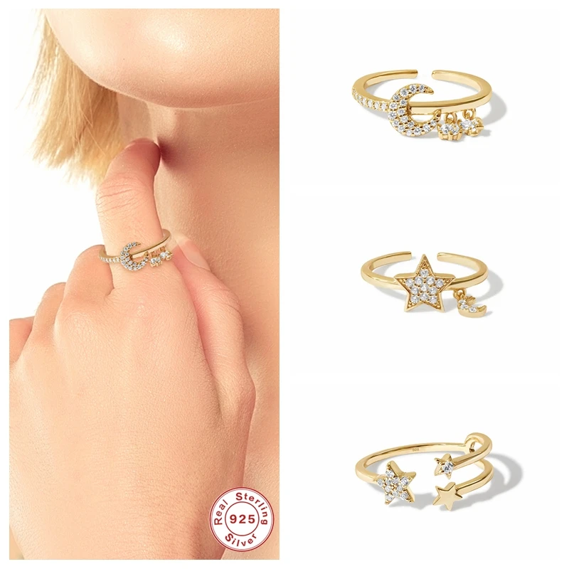 100% 925 стерлингового серебра в Корейском стиле INS с изображением луны и звезд, обручальные кольца для девочек Женская обувь с блестящими бесцветными кристаллами Регулируемые кольца ювелирных украшений