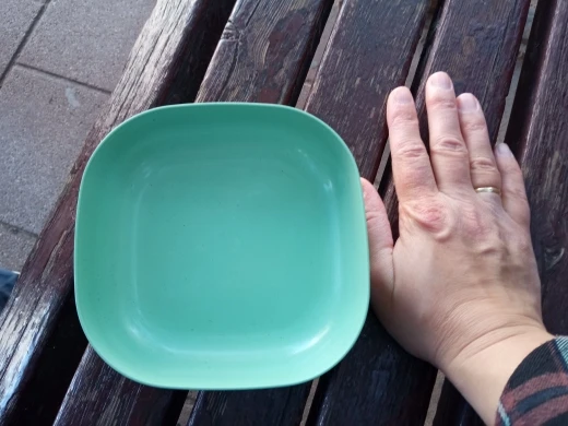 Квадратное неглубокое блюдо: 15 см в диаметре и 1,5 см в высоту