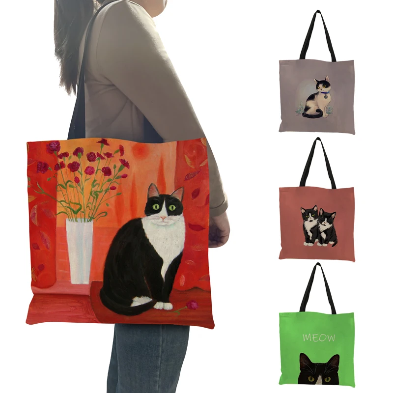 Сумка для покупок B13027 с милым принтом кота и чернилами, женские ...