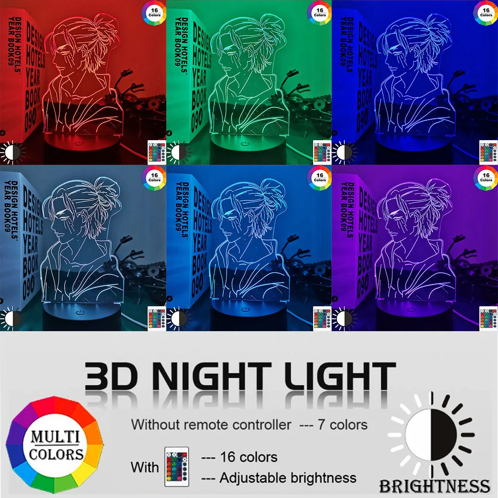 Светильник с аниме-фигурка Эрена йегера атака на Титанов 4, ночник для спальни, детский подарок на день рождения, 3d лампа Shingeki No Kyojin