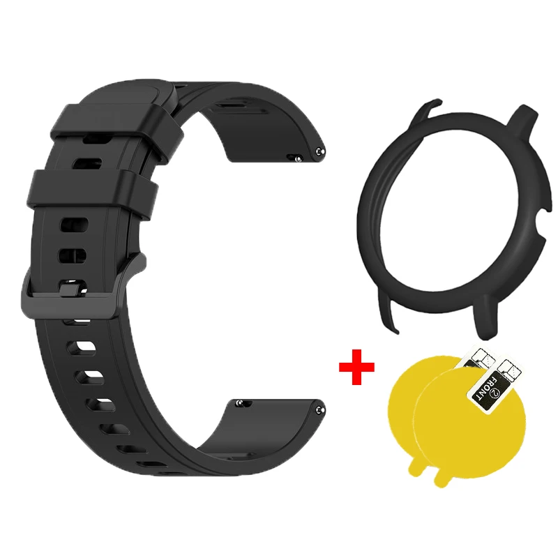 Материал: силикон Доступные цвета на выбор Подходит для запястья диаметром 150-215 мм Посылка: 1 силиконовый ремешок 1 чехол для ПК 2 * Защита экрана 1 * влажные салфетки 1 * сухие салфетки Примечание: (часы в комплект не входят)