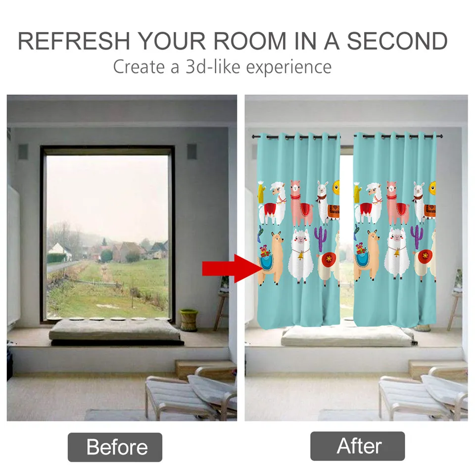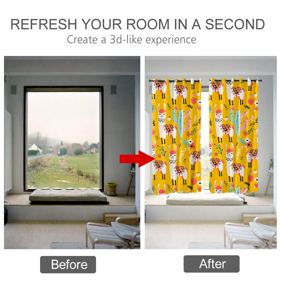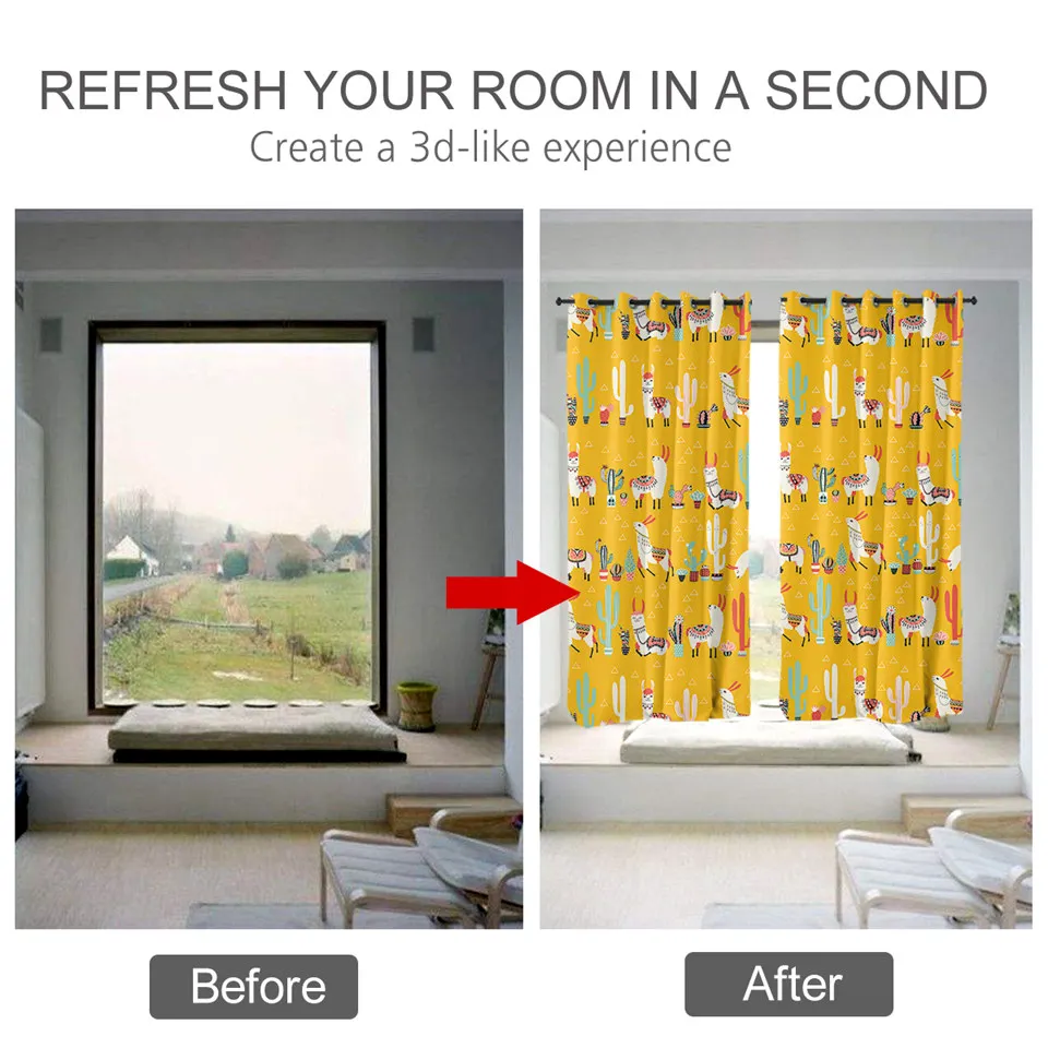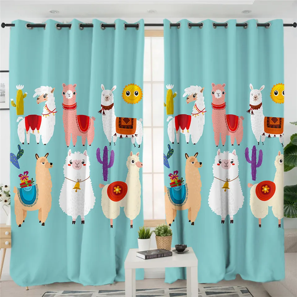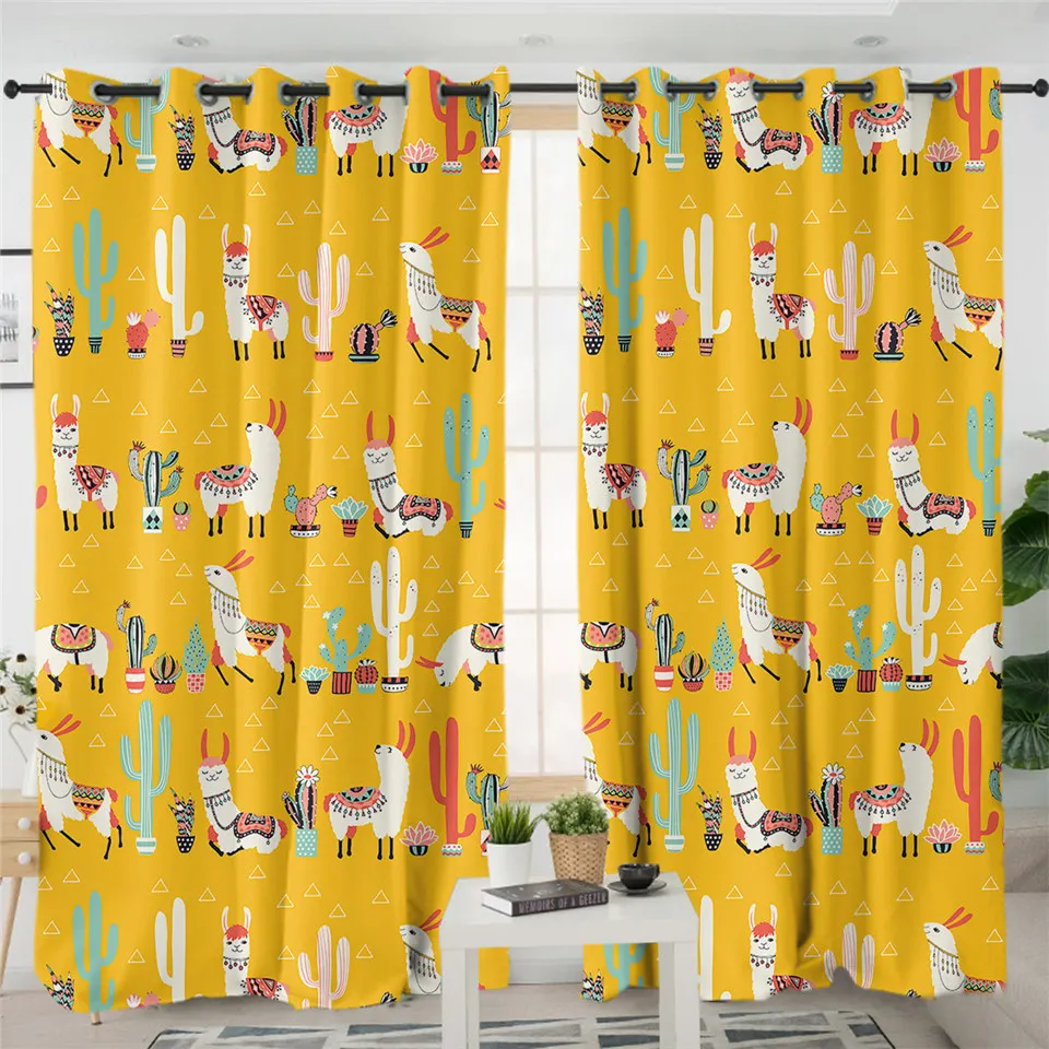 Занавески BeddingOutlet с альпакой для детской спальни, затемняющие шторы в виде ламы, кактуса, желтые затемняющие шторы, 1 шт., занавески с мультяшными животными