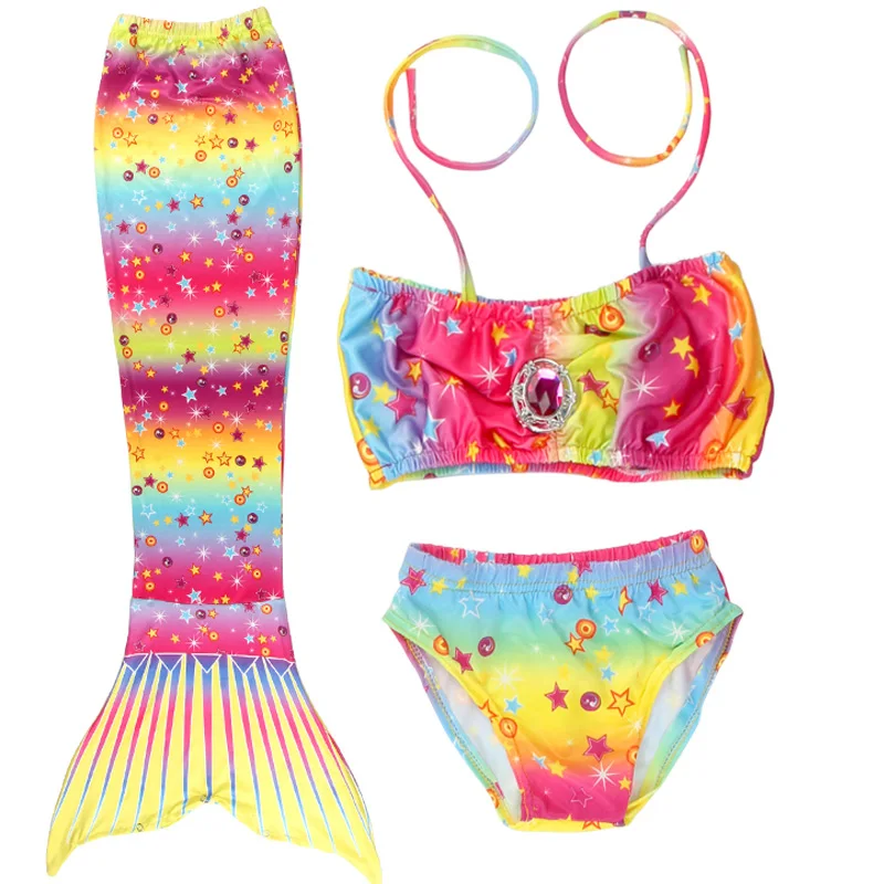 2021 Новый 6 шт.компл. Радуга Стиль купальник с хвостом Русалочки с ребром для маленьких девочек праздничное платье костюм купальный Swimuit платье