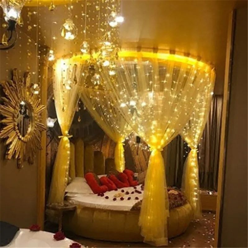 3X3M светодиодный фонарь на медном проводе светильник шнура USB гирлянда штора строка светильник на день рождения, свадьбу, Рождество Спальня украшение праздника 5z