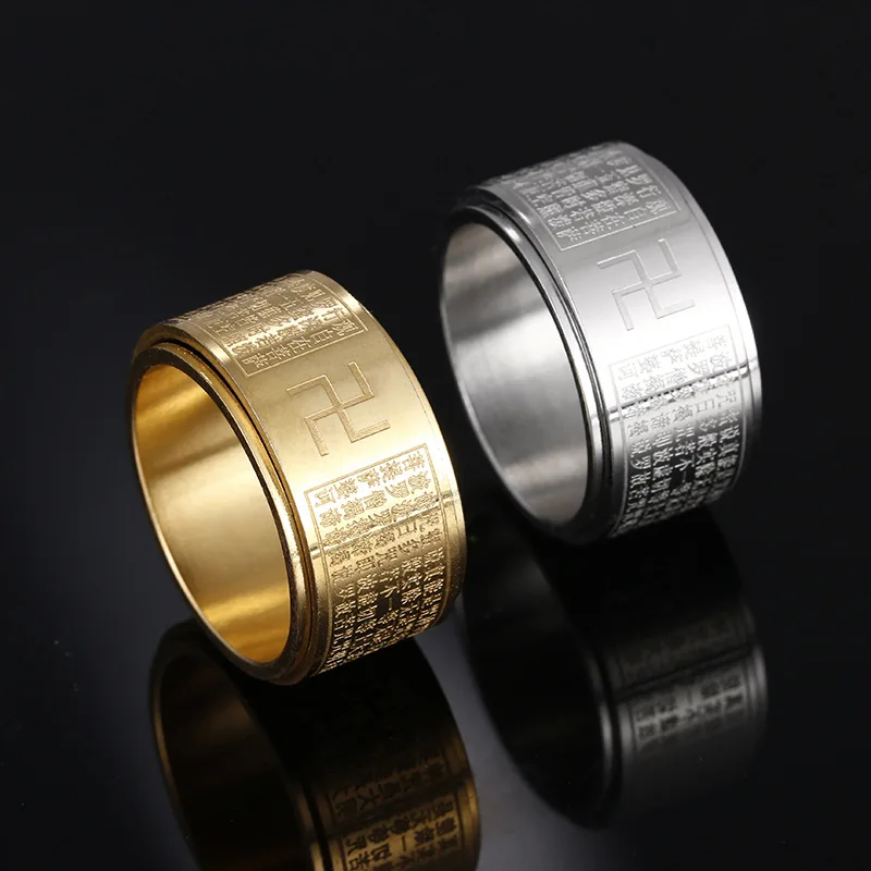Аксессуары и украшения украшение в буддистском стиле Мужское кольцо вращающийся Нержавеющаясталь письмо Hannya Shingyo Юбилей кольца для мужчин