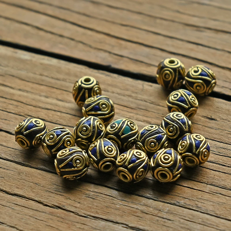TZ-K02 Ретро Непальские бусины ручной работы красный коралл тибетская глина мозаика бусина буква Антикварные Золотые бриллиантовые браслеты