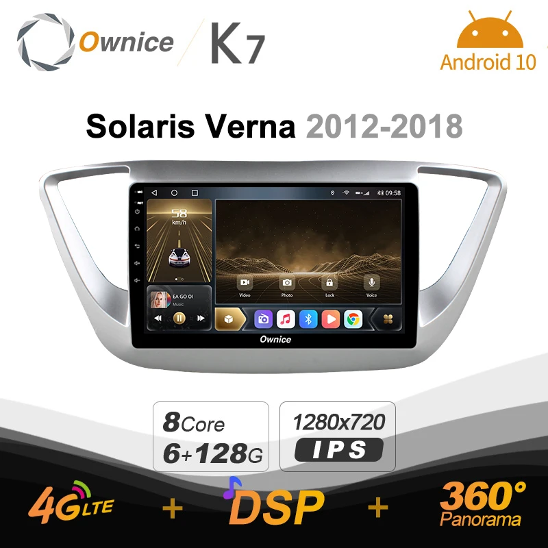 Автомагнитола K7 Ownice, 2 Din, Android 10,0, для hyundai solaris, verna 2012-2018, с 8-ядерным процессором, с внешним микрофоном