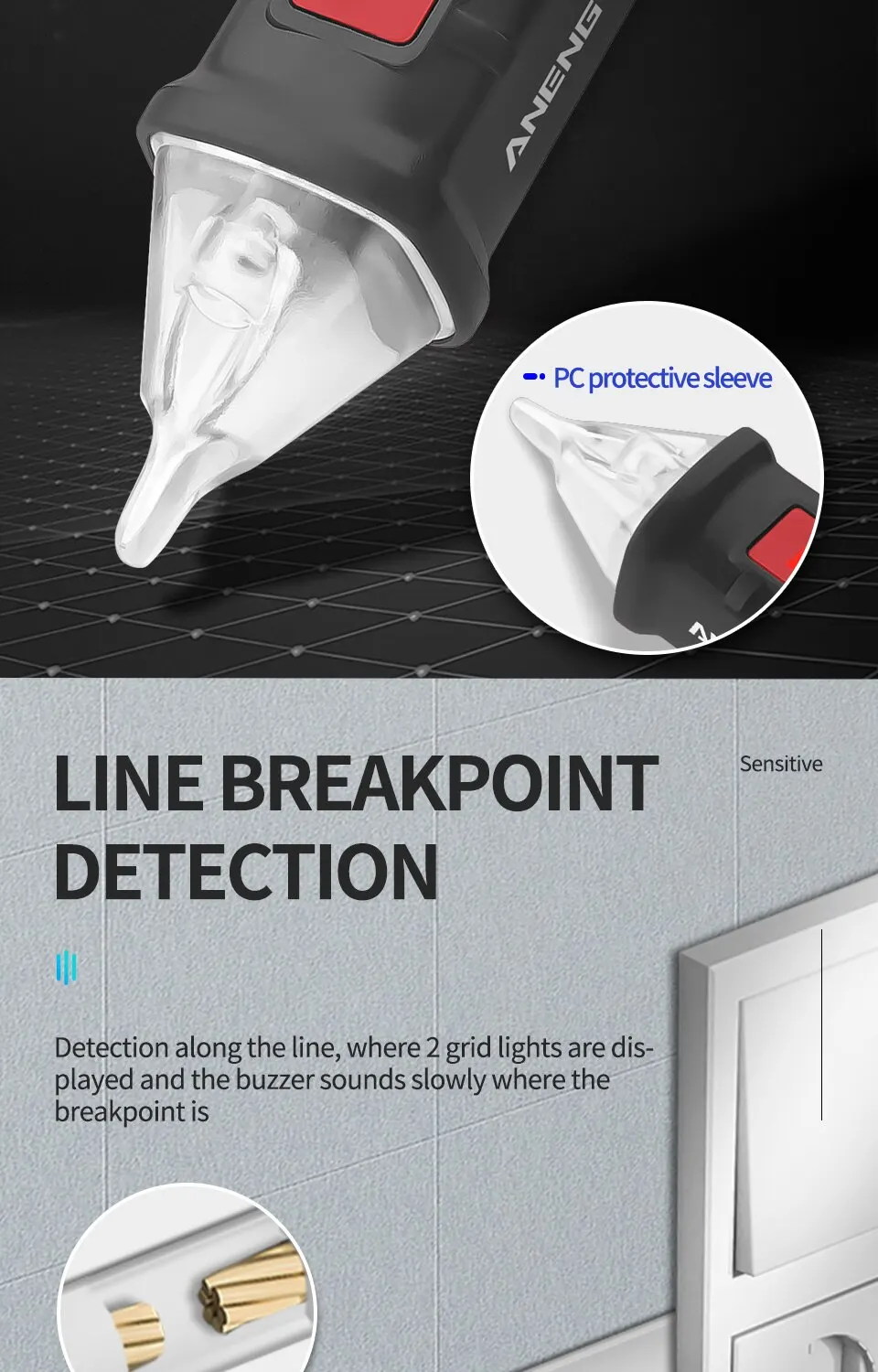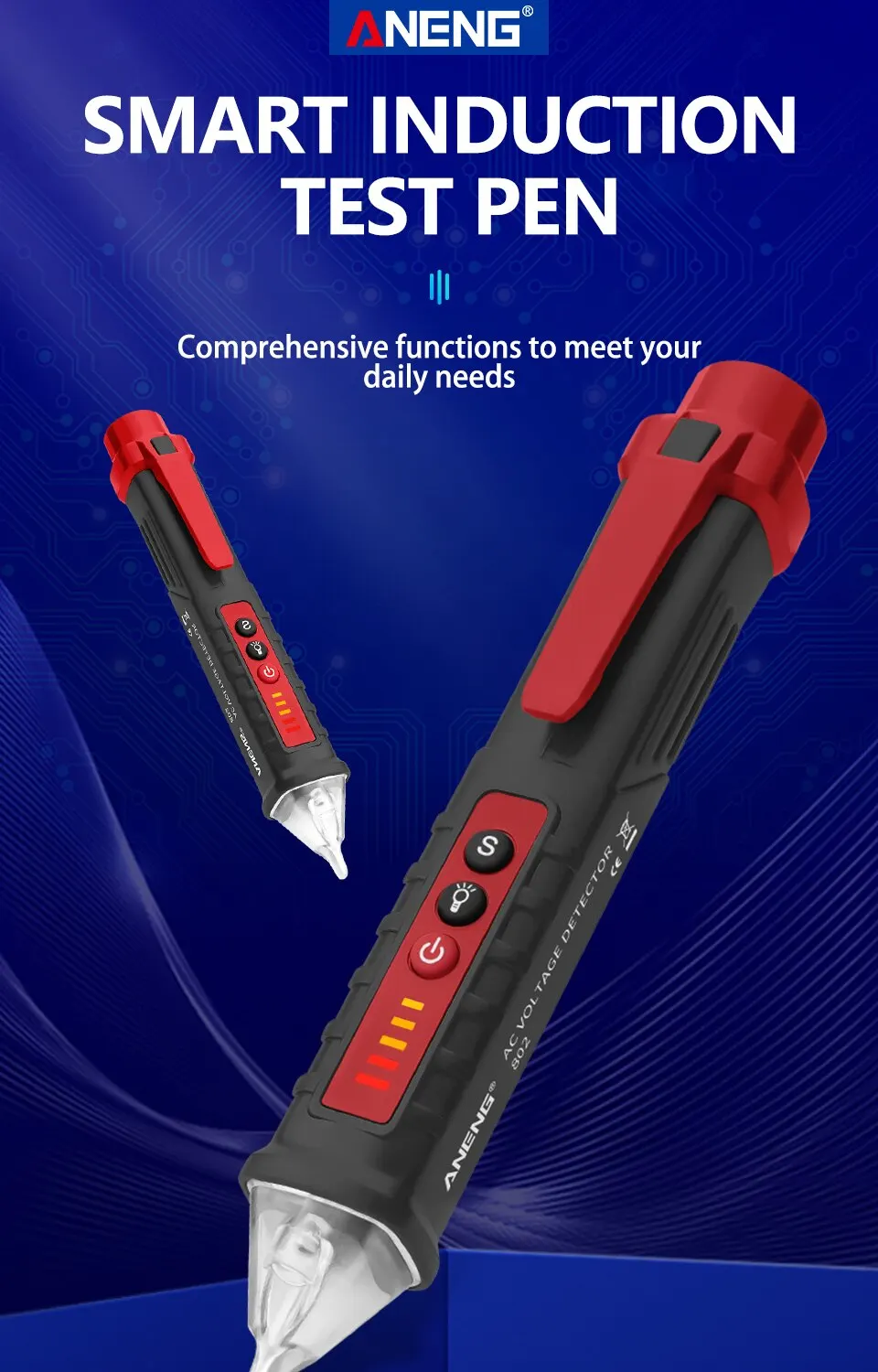 Бесконтактный детектор напряжения переменного тока ANENG VD802, тестер, измеритель напряжения 12-1000 В в стиле ручки, электрический индикатор, светодиодный измеритель напряжения, вейп-ручка 2021