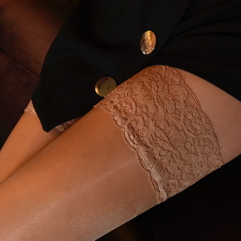 Чулки женские, с кружевным верхом, Нескользящие, блестящие, Несколь...