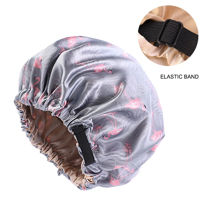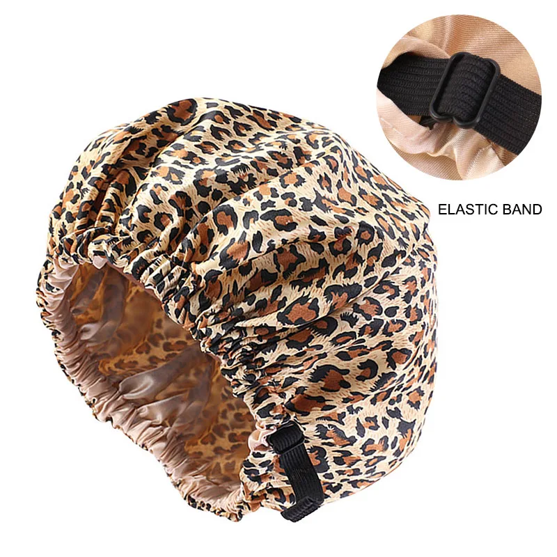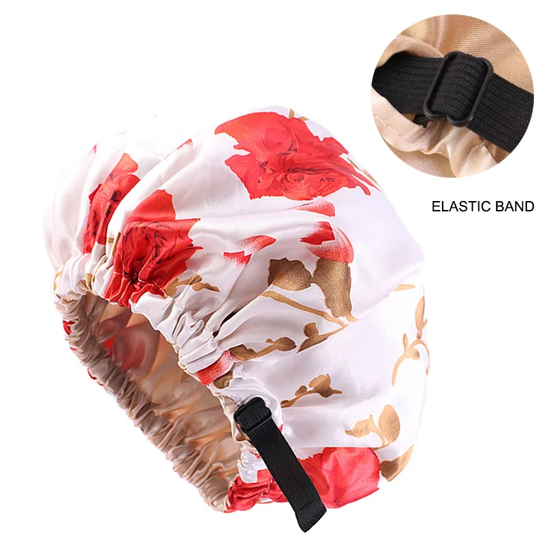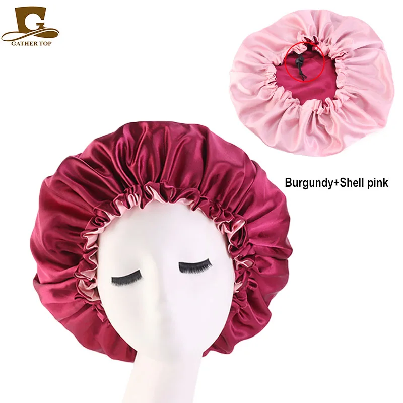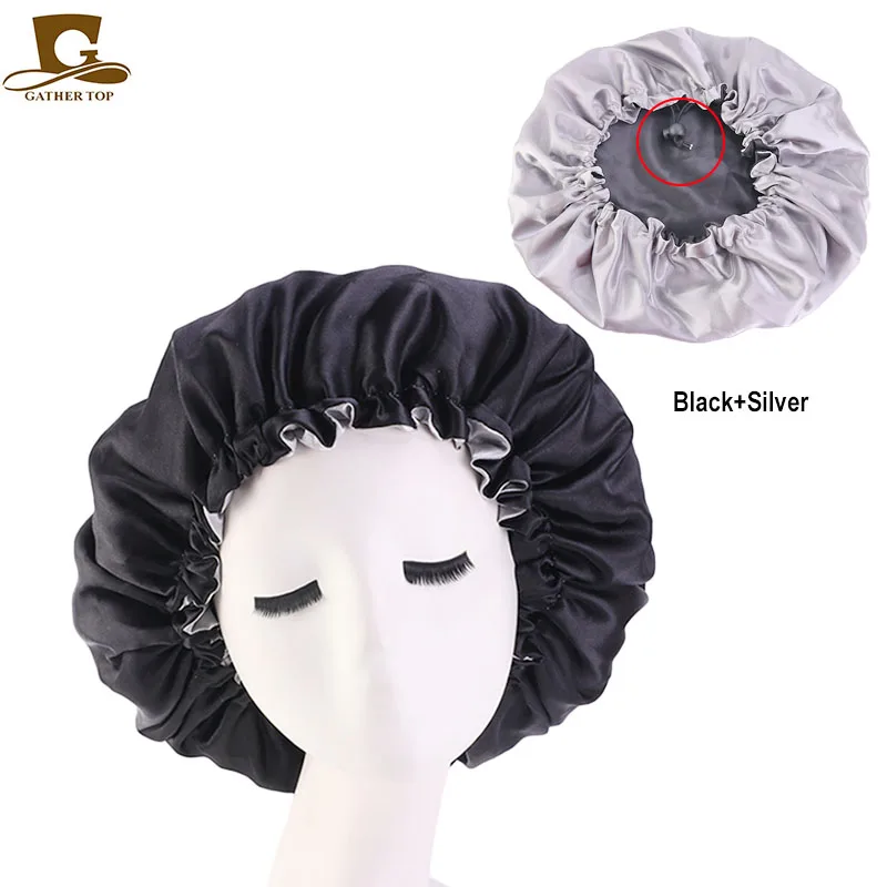 Регулируемая атласная Женская шапочка, двухслойный головной убор для сна, для дня и ночи, аксессуары для волос, большие размеры