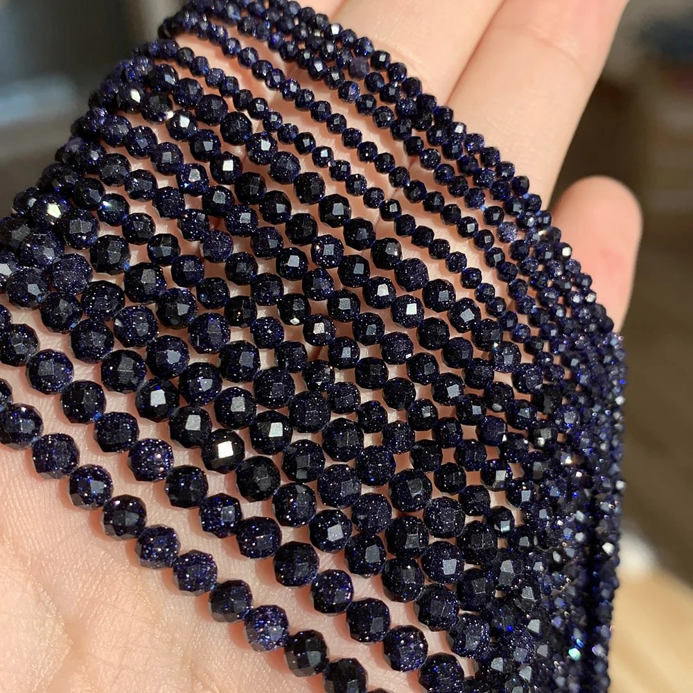 Бусины граненые из натурального синего песчаника, 2/3/4 мм, для самостоятельного изготовления ювелирных изделий дюйма