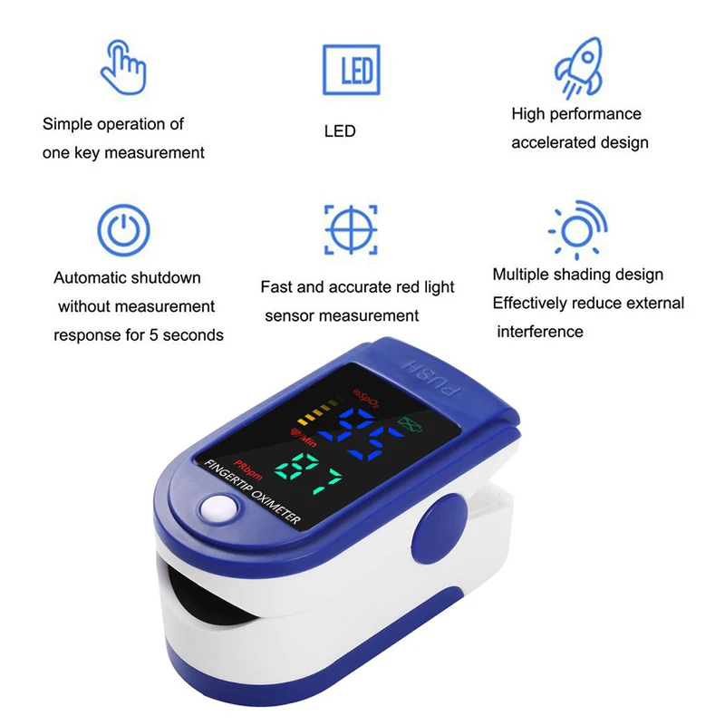 Пальчиковый Пульсоксиметр для простой ежедневной проверки, может быть использован в семьях, социальных центрах, общественных центрах обслуживания и т. Д.
