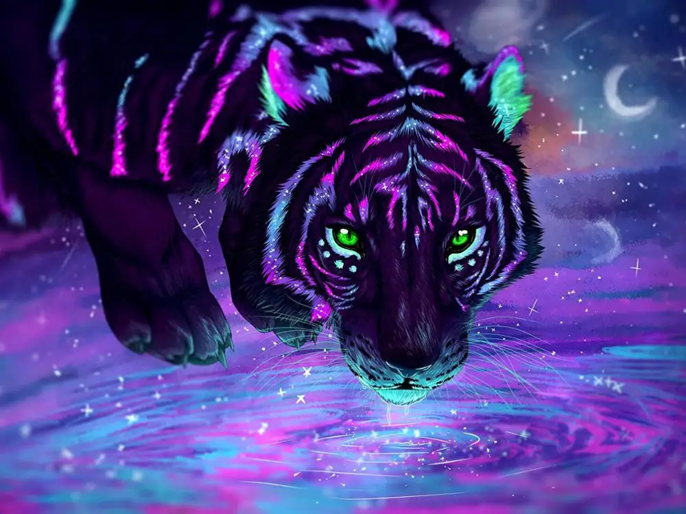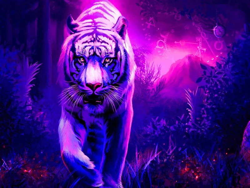 Современная флуоресцентная картина тигра в скандинавском стиле, нас...