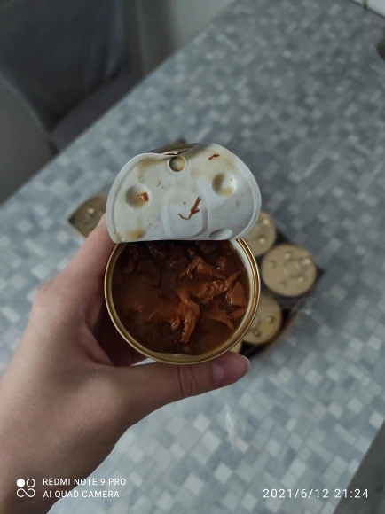 До этого был любимый корм кошки, но этот есть не стала, думал может разонравился, купил в нормальном магазине банку, насыпал и кошка слопала за 10 секунд, этот же вообще не ест, в общем паль, а животных не проведешь. Не советую.
