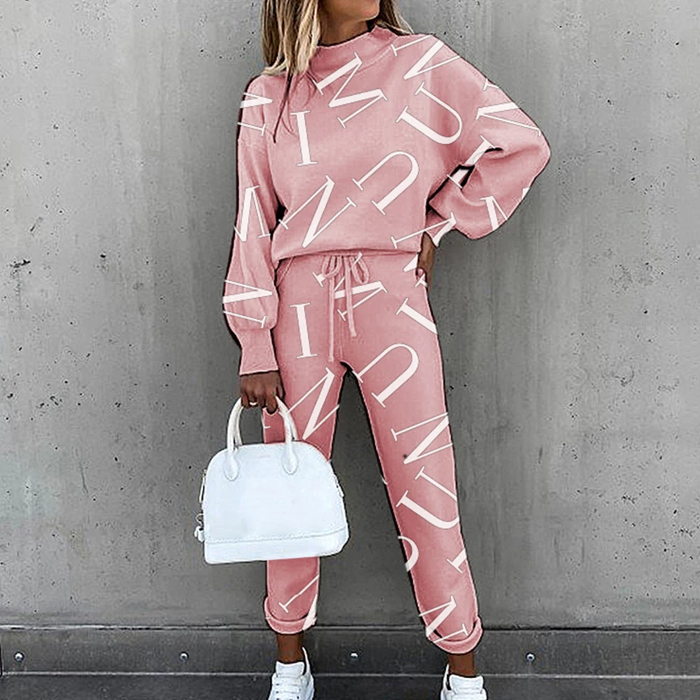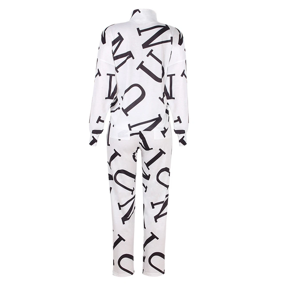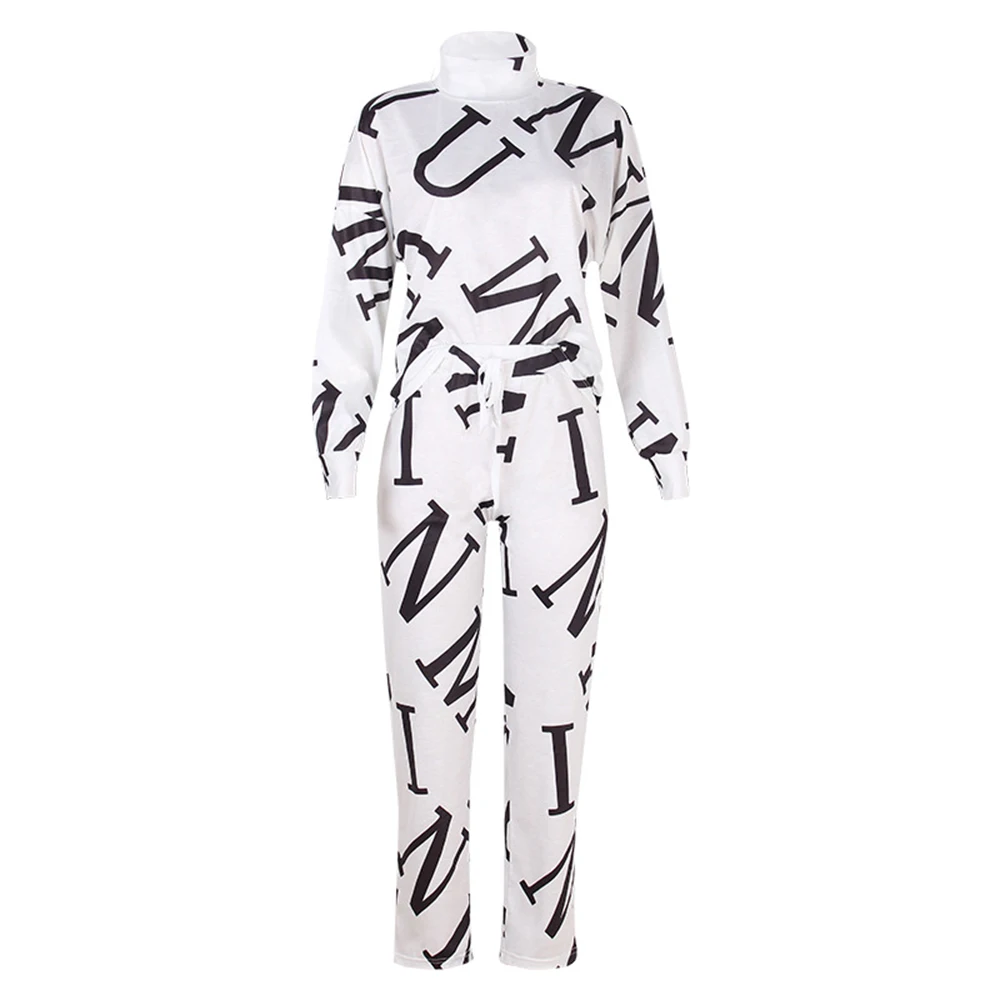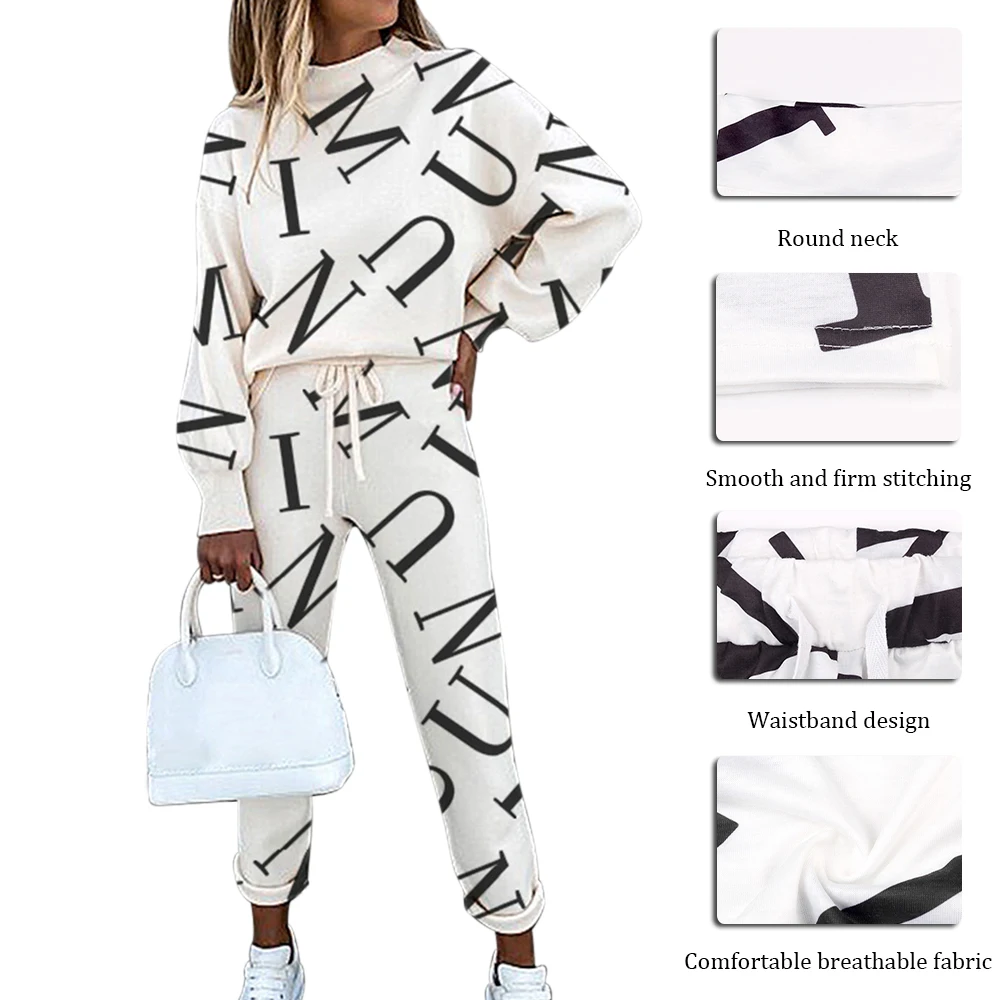 Женский спортивный костюм, комплект из 2 предметов, Повседневная Блузка с длинным рукавом и буквенным принтом, весна-осень 2021