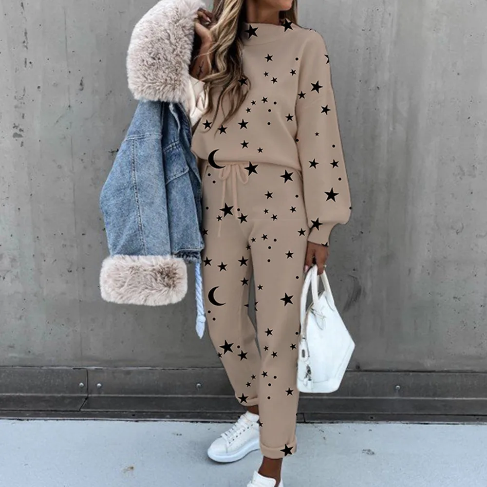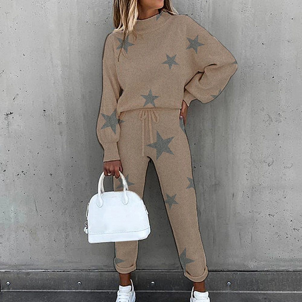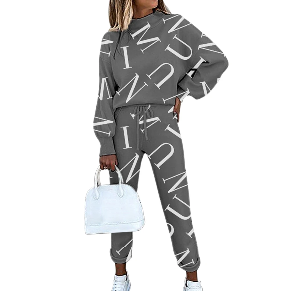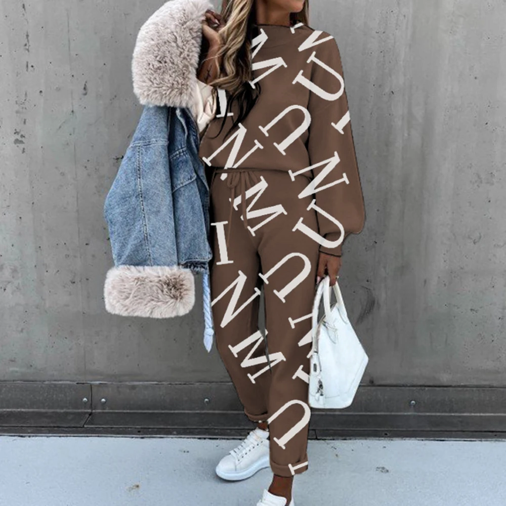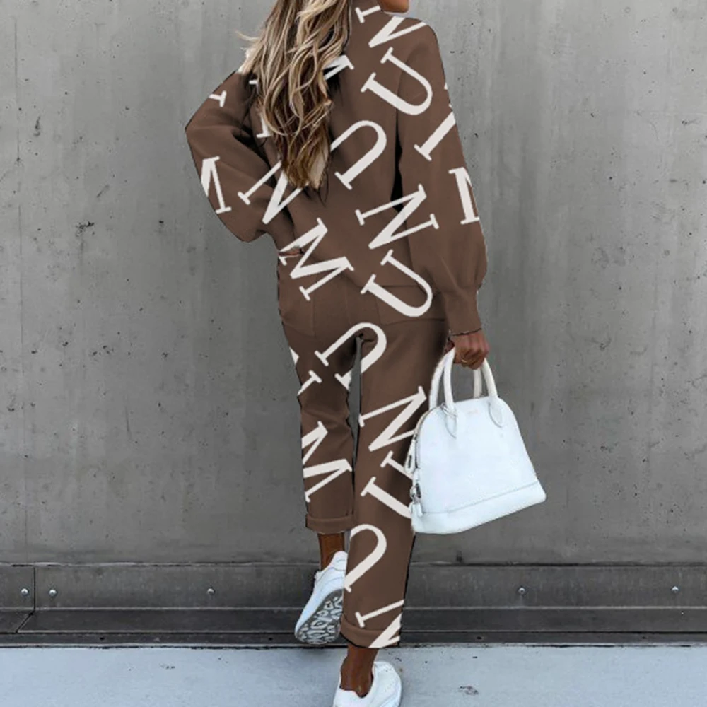 Женский спортивный костюм, комплект из 2 предметов, Повседневная Блузка с длинным рукавом и буквенным принтом, весна-осень 2021