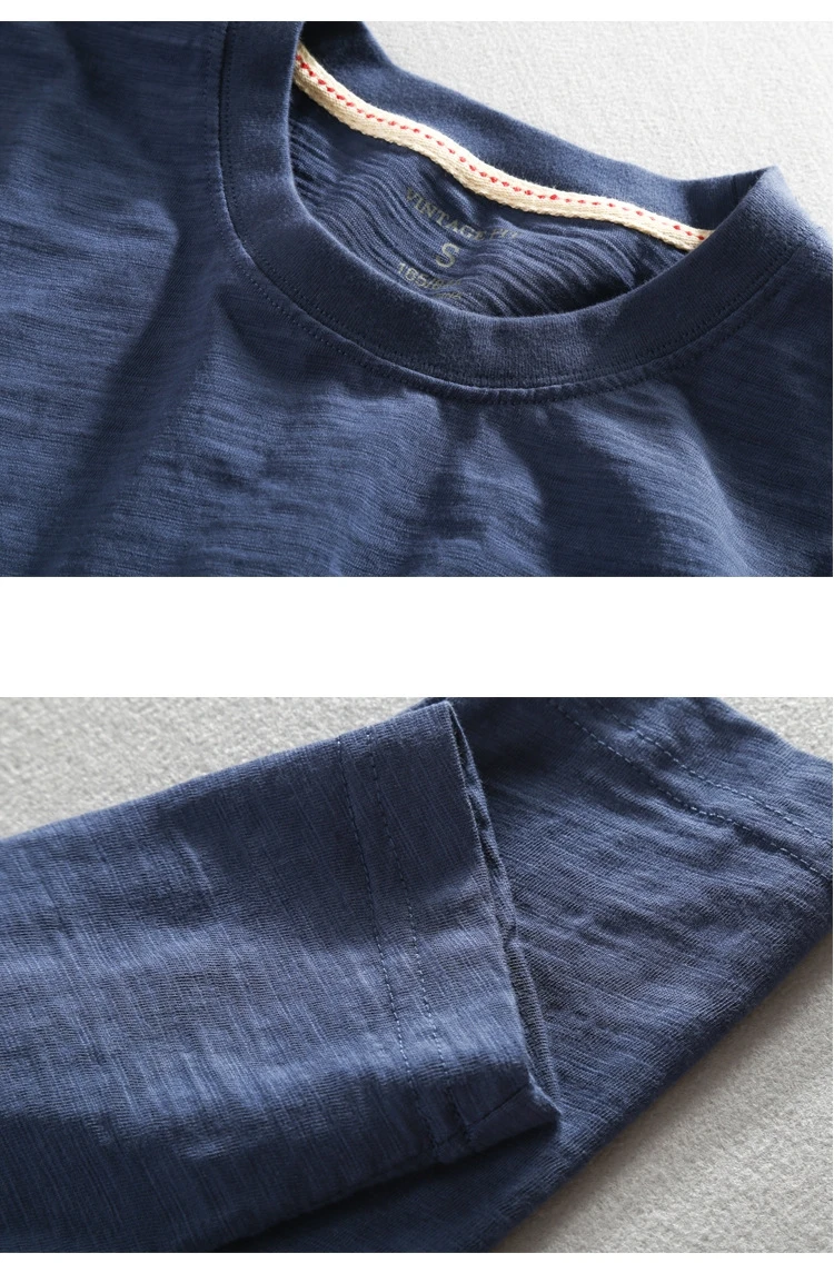 Футболка мужская из бамбука и хлопка, винтажный однотонный топ с длинным рукавом, круглый вырез, Тонкая Повседневная узелковая рубашка