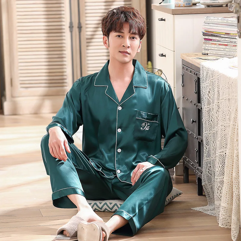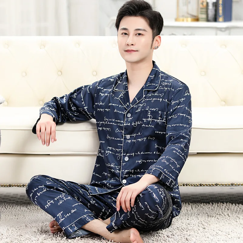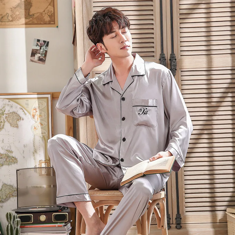Летняя Пижама, Мужская пижама, мужской комплект, шелковая пижама Lmitation для мужчин, уютная мягкая ночная рубашка с длинным рукавом, Мужская пижама, домашняя одежда