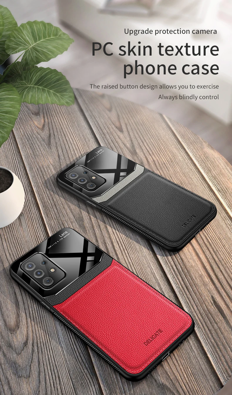 Чехол для Samsung Galaxy A52, стеклянный чехол в стиле ретро с зернистой кожей, кожаный жесткий чехол-накладка для Samsung GalaxyA52 A52, чехол для телефона